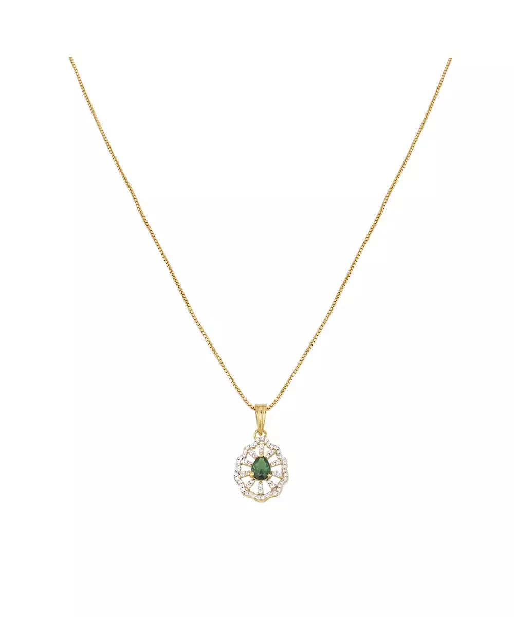 Gold Plated Green Stone Pendant Necklace Set In Sterling Silver