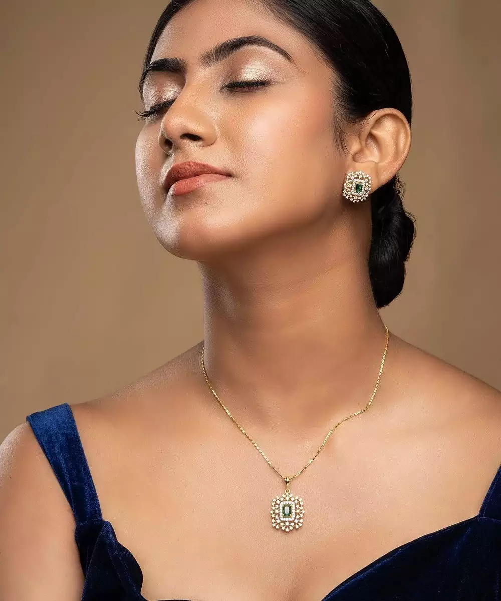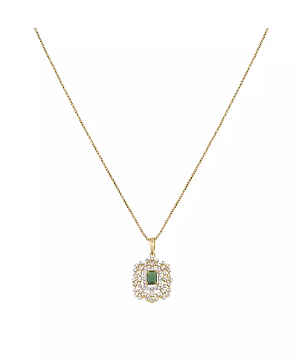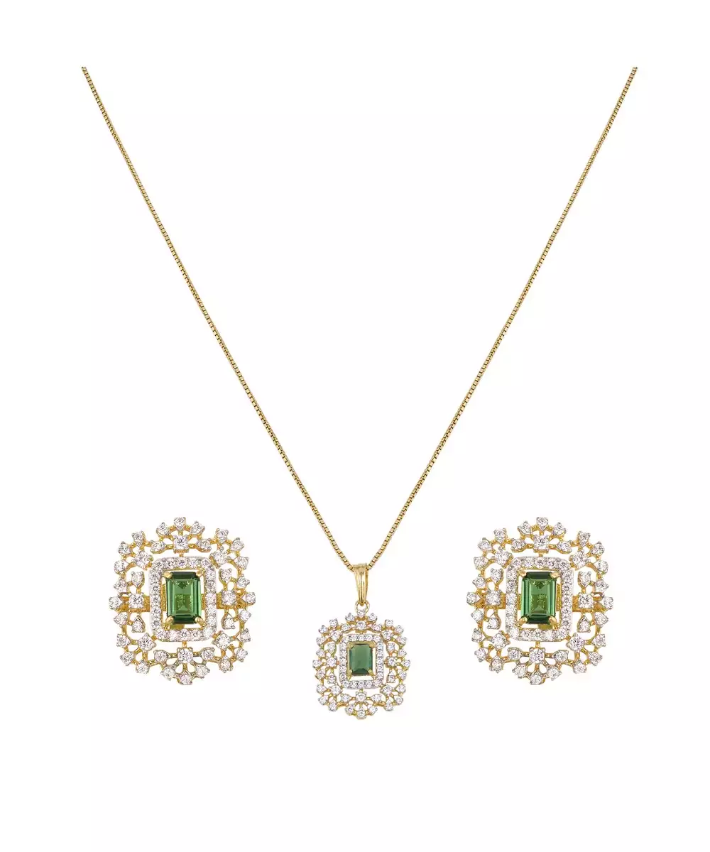 This Exquisite Gold Plated Green Stone Pendant Necklace Set Radiates Elegance And Sophistication. Featuring A Stunning Green Gemstone Centerpiece, It Perfectly Complements The Matching Earrings For A Coordinated Look. Ideal For Festive Occasions Or Evening Wear, This Set Adds A Regal Charm And A Graceful Glow To Any Outfit.