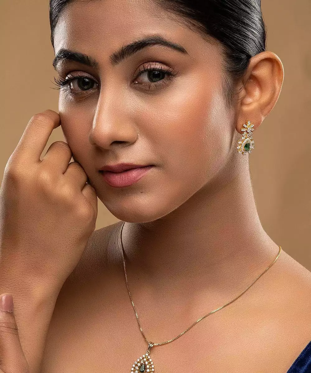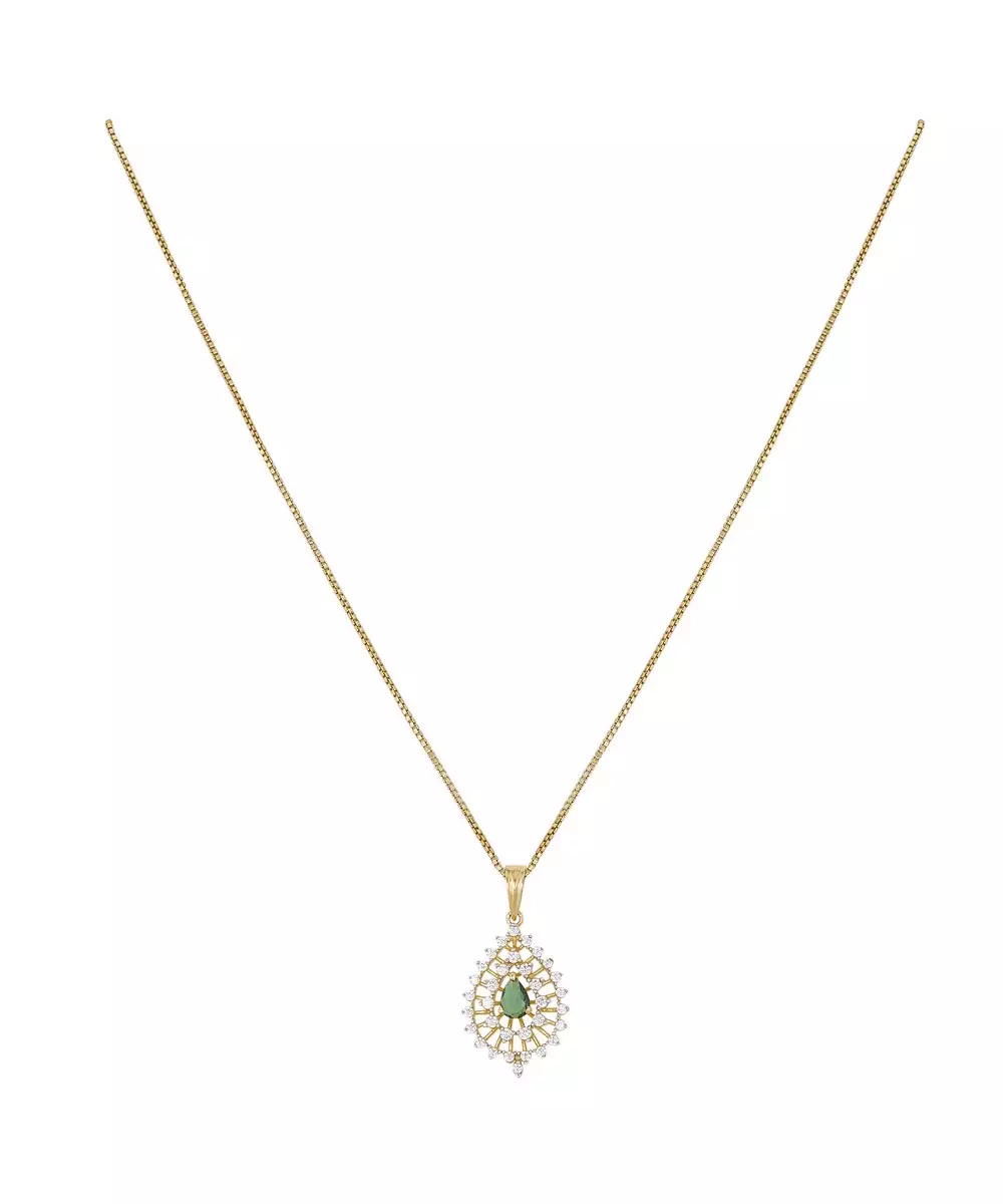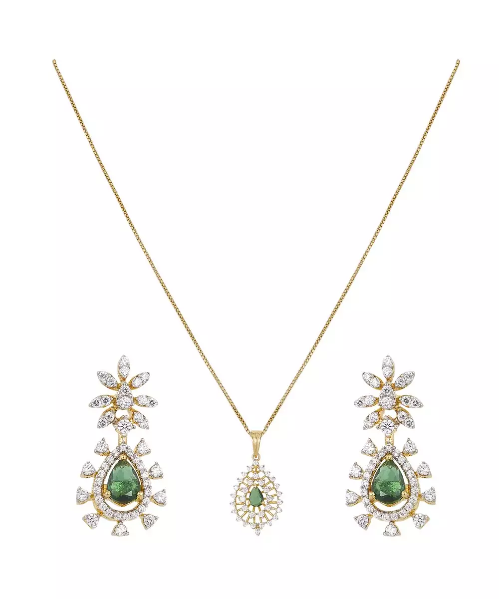 This Exquisite Gold Plated Green Stone Pendant Necklace Set Radiates Elegance And Sophistication. Featuring A Stunning Green Gemstone Centerpiece, It Perfectly Complements The Matching Earrings For A Coordinated Look. Ideal For Festive Occasions Or Evening Wear, This Set Adds A Regal Charm And A Graceful Glow To Any Outfit.
