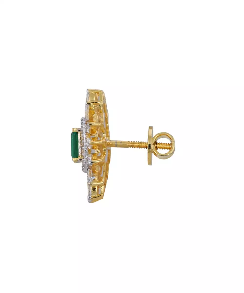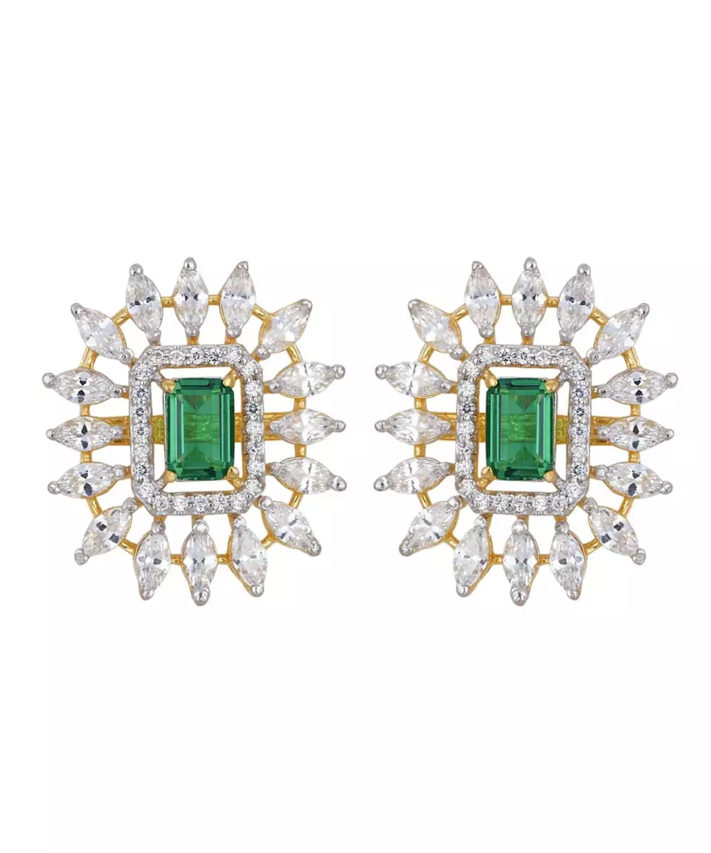 These Gold Plated Green Stone Dangler Earrings In Sterling Silver Radiate Elegance And Charm. The Vibrant Green Stones Stand Out Beautifully Against The Golden Finish, Creating A Striking Contrast. Crafted On A Durable Sterling Silver Base, They Are Lightweight, Versatile, And Perfect For Festive Occasions, Parties, Or Enhancing Everyday Ethnic Attire.