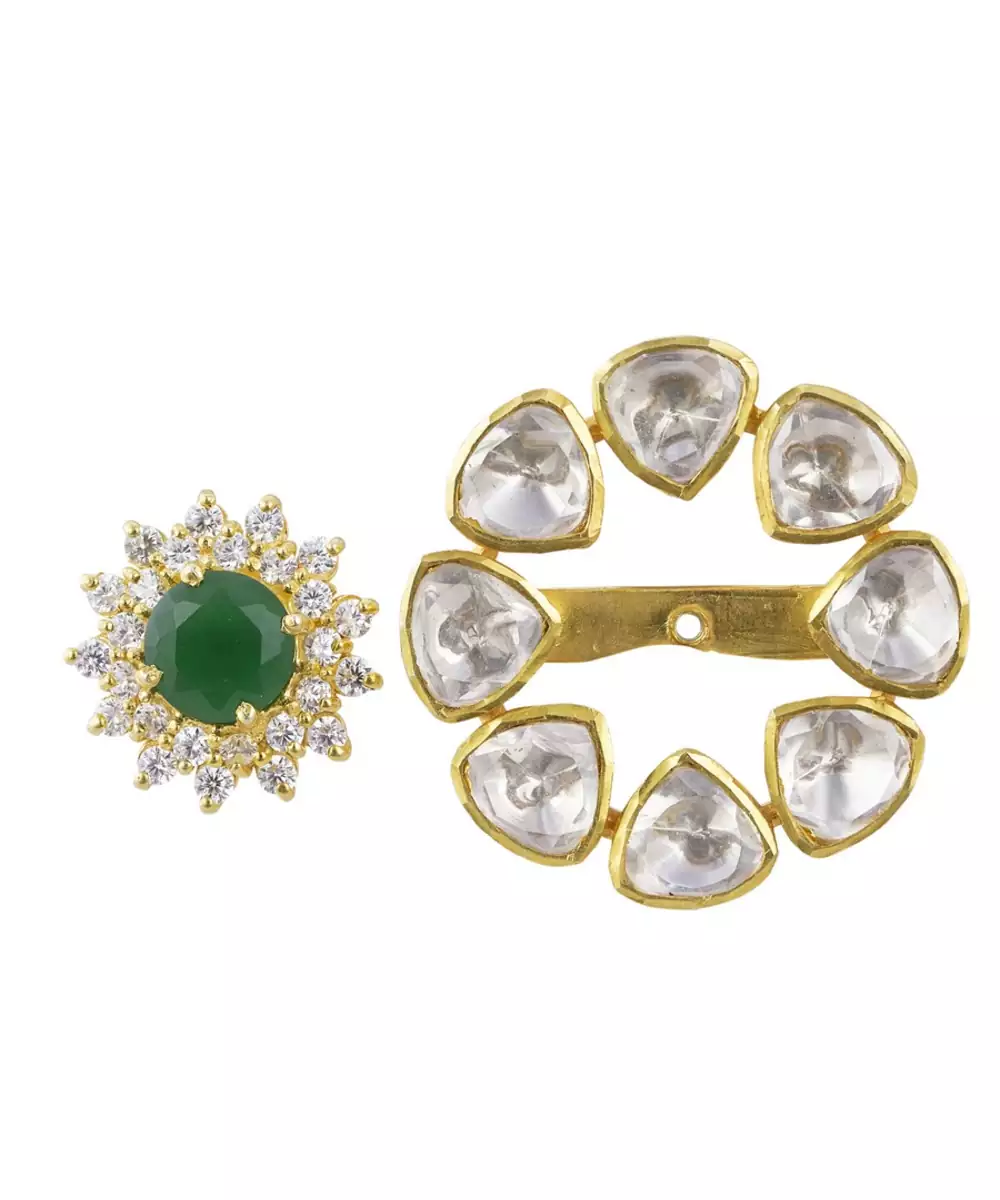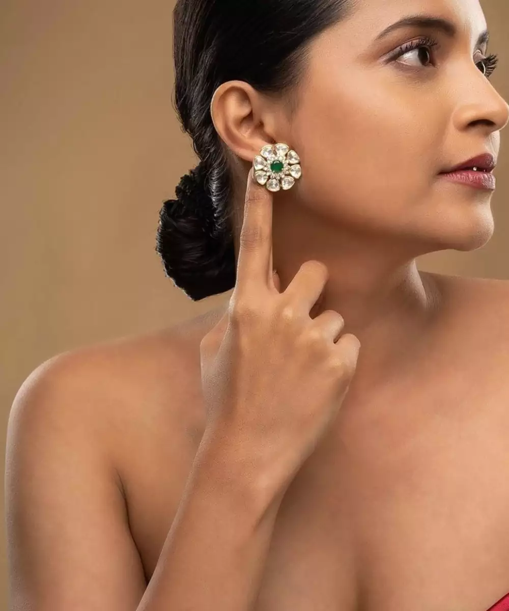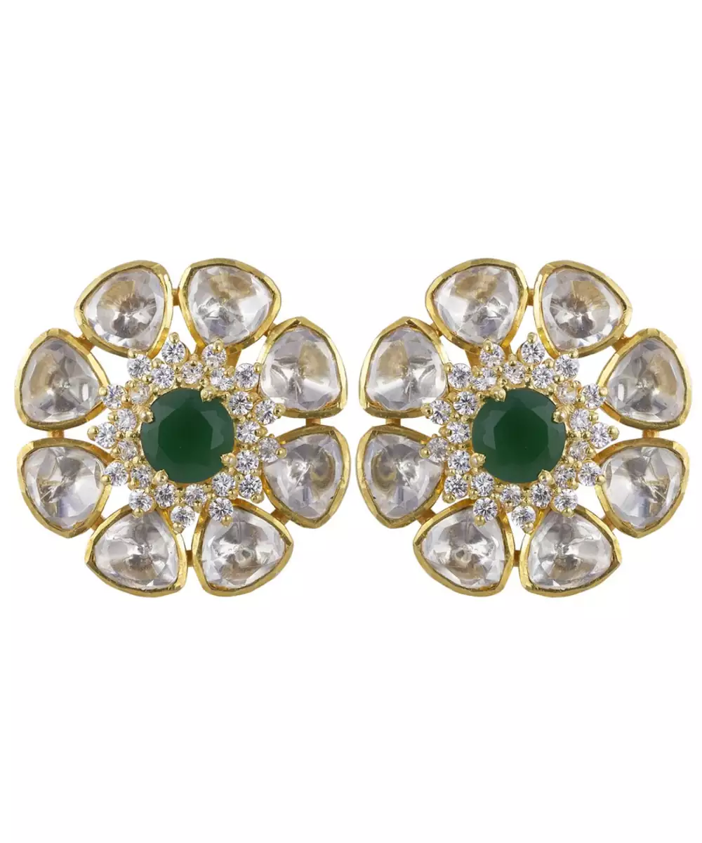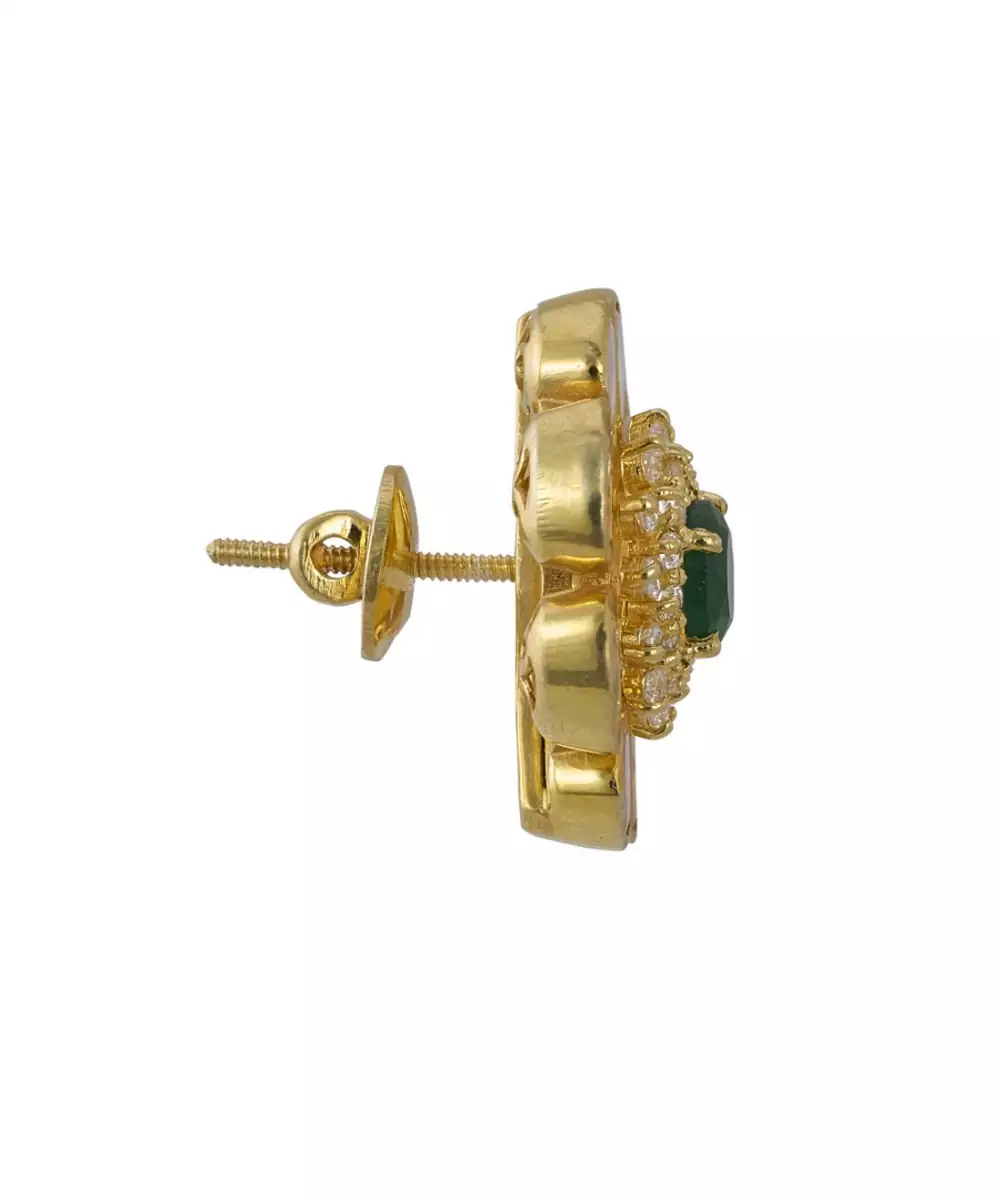 These Gold Plated Green Stone Stud Earrings In Sterling Silver Combine Simplicity With Timeless Charm. The Rich Green Stones Shine Brilliantly Against The Golden Finish, Adding A Pop Of Elegance. Durable Yet Lightweight, They Are Perfect For Everyday Wear Or Festive Occasions, Offering A Refined Touch To Both Modern And Traditional Outfits.