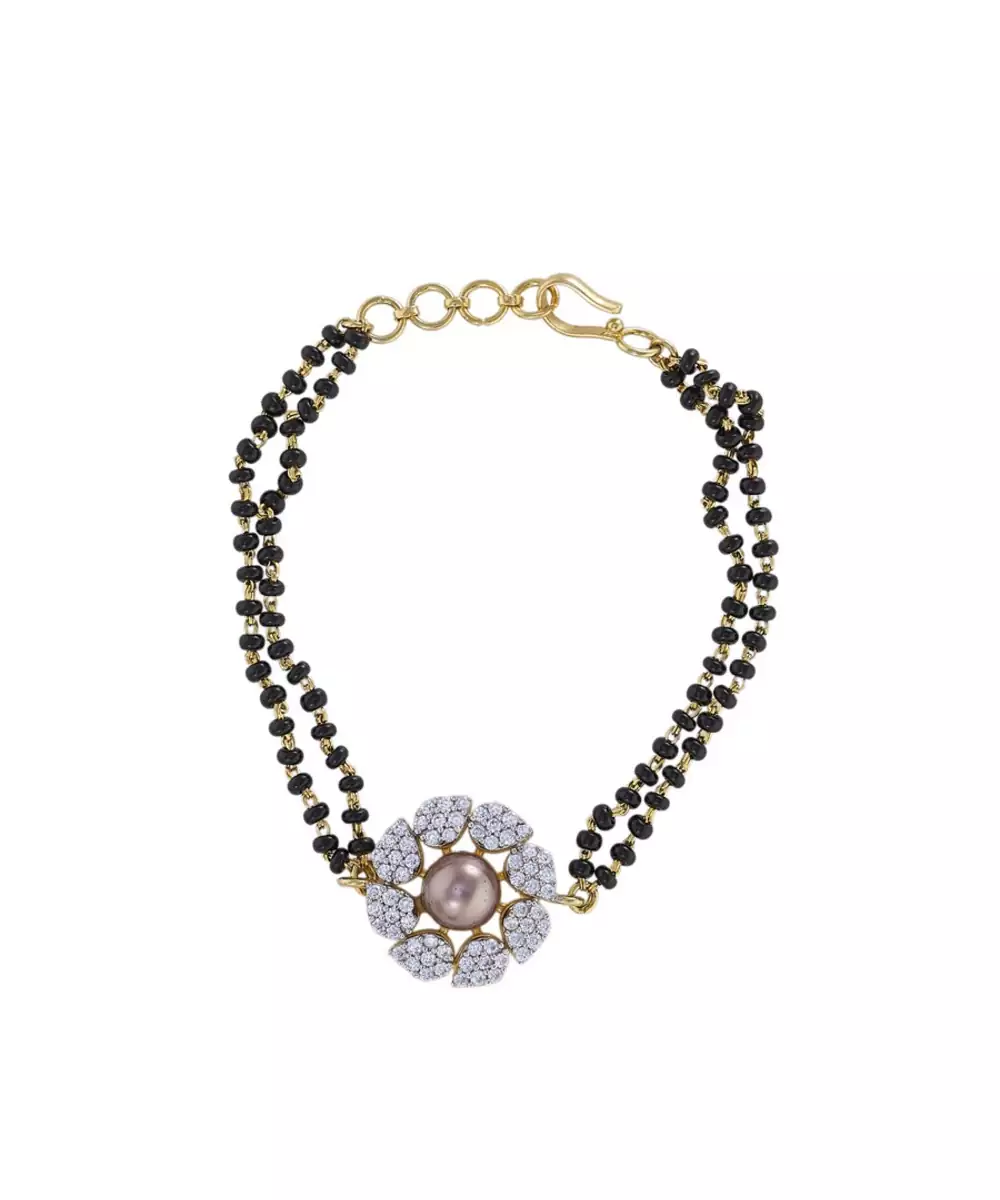 This Gold Plated Hand Mangalsutra Crafted In Sterling Silver Blends Modern Elegance With Traditional Significance. Its Sleek Design Features A Delicate Black Beaded Chain Paired With A Minimal Pendant, Offering A Timeless Appeal. Lightweight And Versatile, It Is Perfect For Daily Wear Or Special Occasions, Symbolizing Love And Commitment In Style.