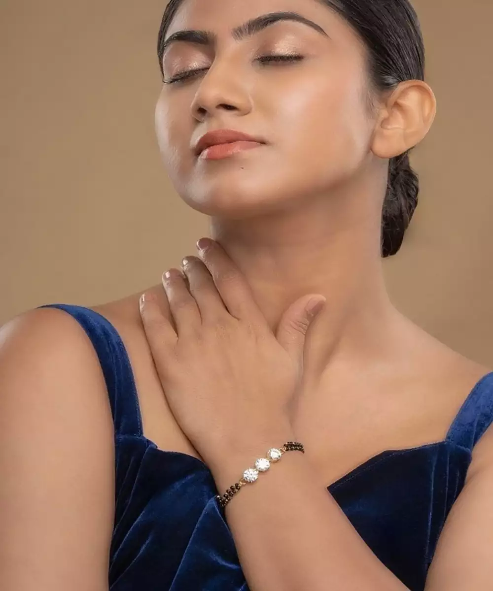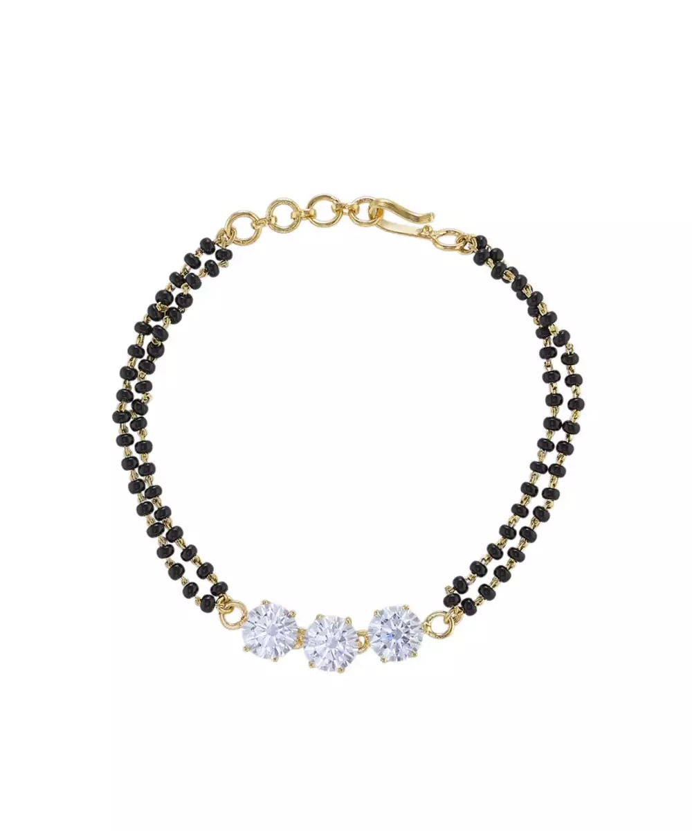 This Gold Plated Hand Mangalsutra Crafted In Sterling Silver Blends Modern Elegance With Traditional Significance. Its Sleek Design Features A Delicate Black Beaded Chain Paired With A Minimal Pendant, Offering A Timeless Appeal. Lightweight And Versatile, It Is Perfect For Daily Wear Or Special Occasions, Symbolizing Love And Commitment In Style.