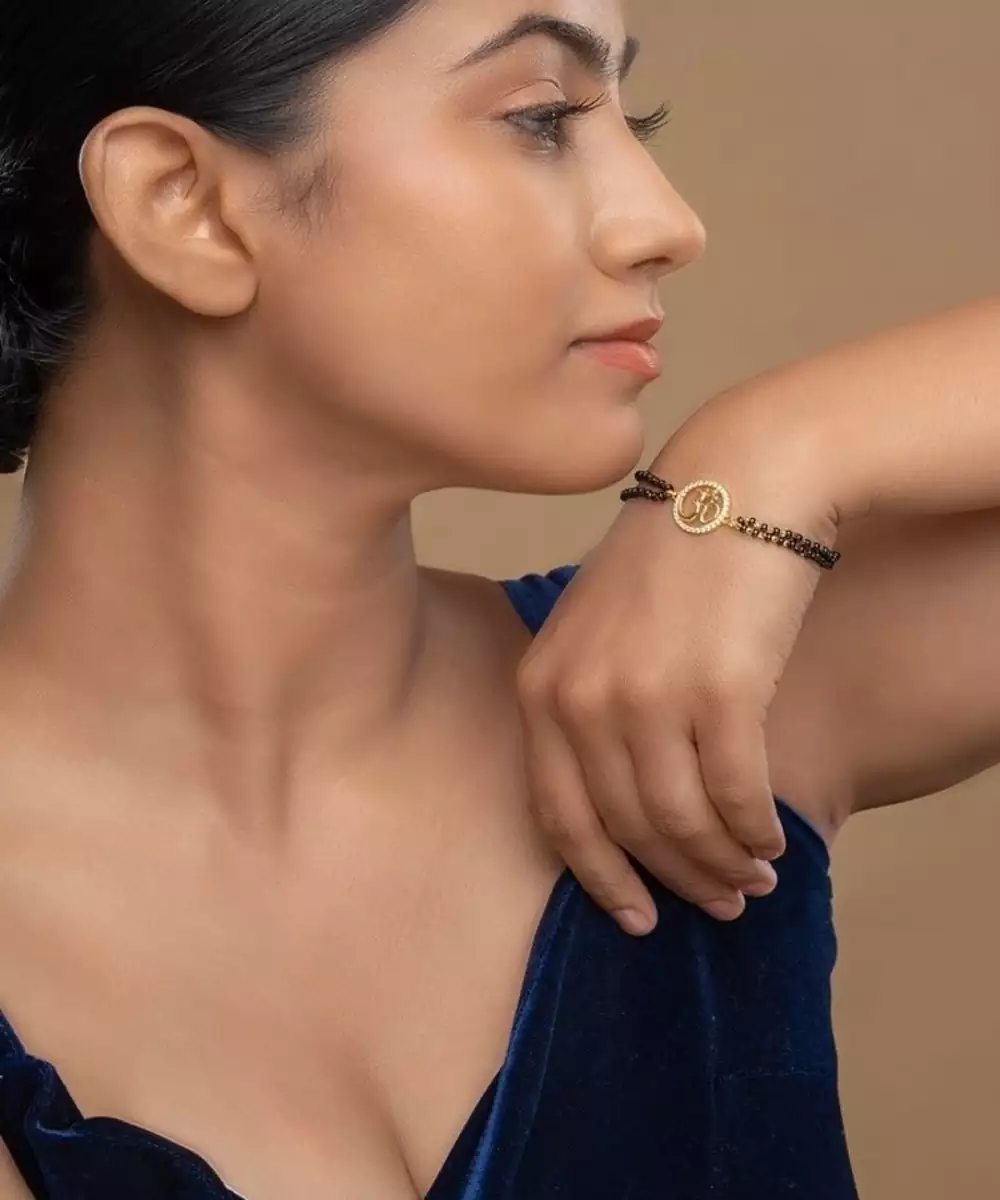 This Gold Plated Hand Mangalsutra Crafted In Sterling Silver Blends Modern Elegance With Traditional Significance. Its Sleek Design Features A Delicate Black Beaded Chain Paired With A Minimal Pendant, Offering A Timeless Appeal. Lightweight And Versatile, It Is Perfect For Daily Wear Or Special Occasions, Symbolizing Love And Commitment In Style.