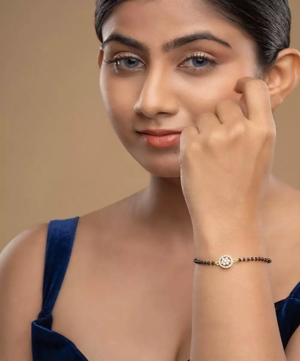 This Gold Plated Hand Mangalsutra Crafted In Sterling Silver Blends Modern Elegance With Traditional Significance. Its Sleek Design Features A Delicate Black Beaded Chain Paired With A Minimal Pendant, Offering A Timeless Appeal. Lightweight And Versatile, It Is Perfect For Daily Wear Or Special Occasions, Symbolizing Love And Commitment In Style.