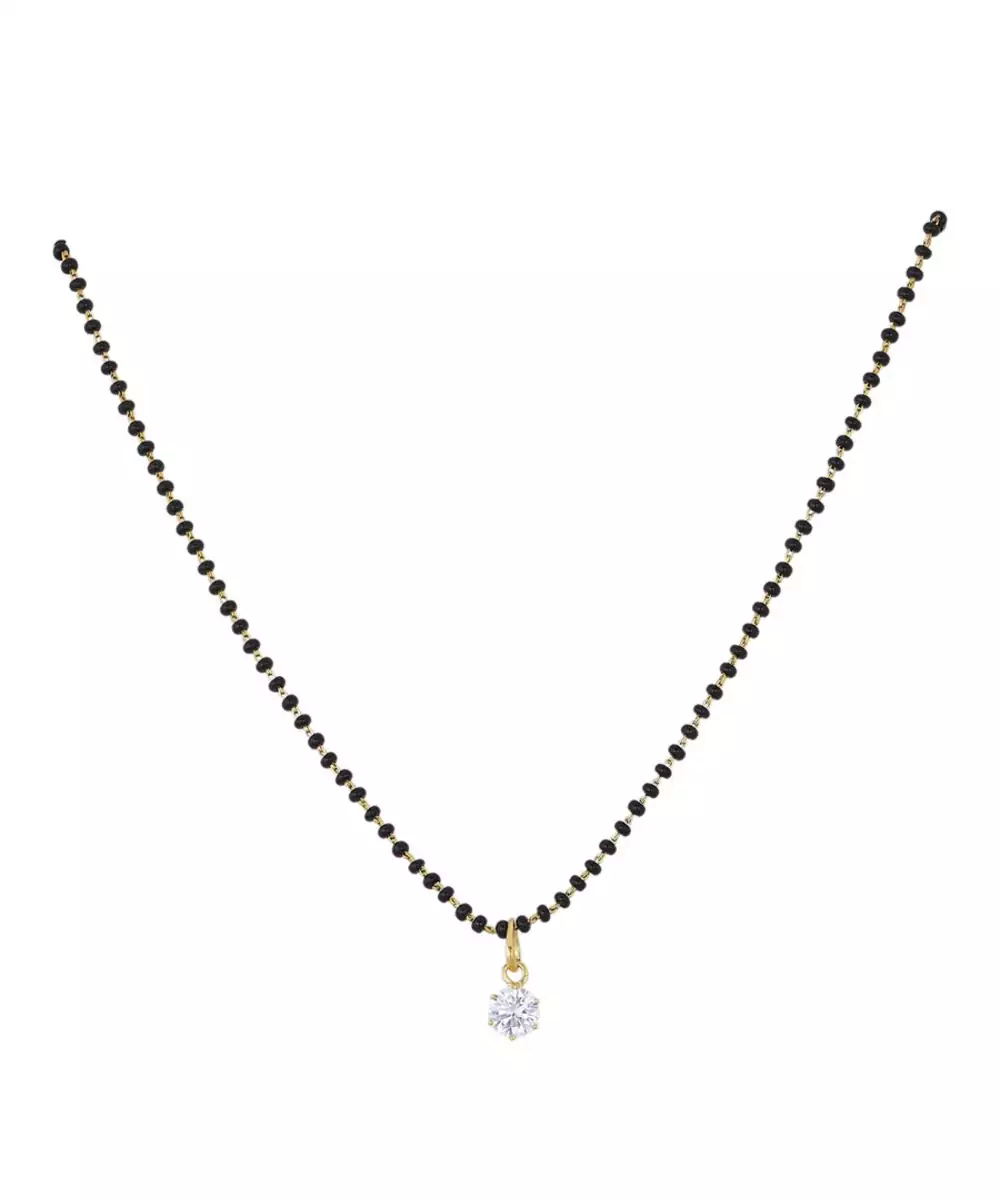 This Gold Plated Mangalsutra In Sterling Silver Beautifully Combines Tradition With Contemporary Design. Featuring A Classic Black Beaded Chain And A Sleek Gold Plated Pendant, It Exudes Elegance And Grace. Durable Yet Lightweight, It’s Perfect For Everyday Wear As Well As Festive Occasions, Making It A Meaningful Symbol Of Love And Togetherness.