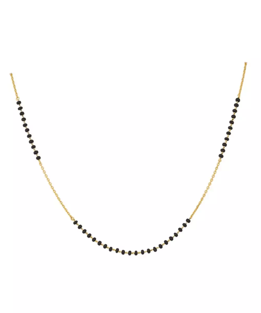 This Gold Plated Mangalsutra In Sterling Silver Beautifully Combines Tradition With Contemporary Design. Featuring A Classic Black Beaded Chain And A Sleek Gold Plated Pendant, It Exudes Elegance And Grace. Durable Yet Lightweight, It’s Perfect For Everyday Wear As Well As Festive Occasions, Making It A Meaningful Symbol Of Love And Togetherness.