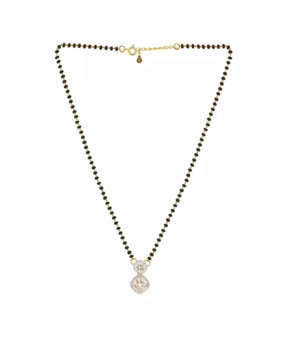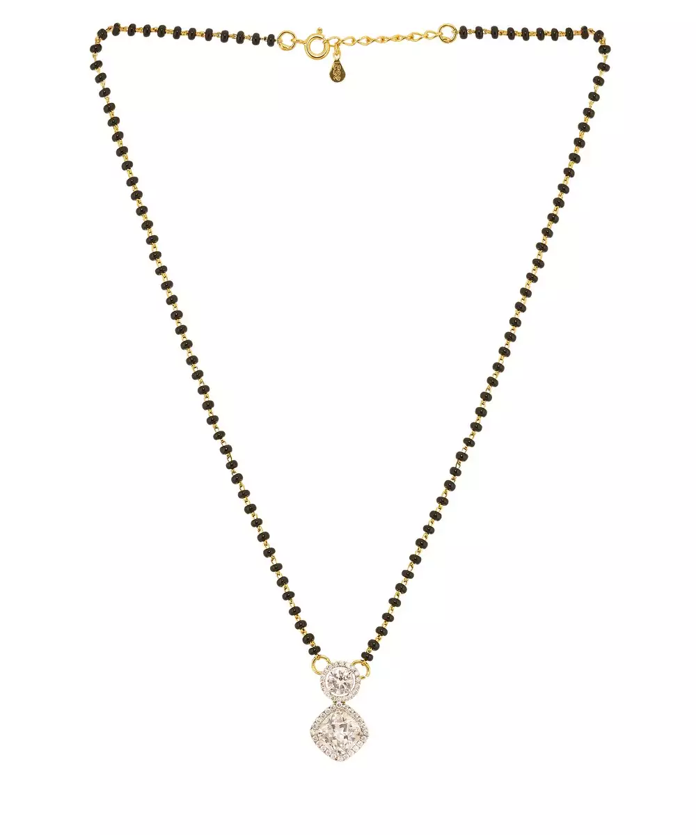This Elegant Gold Plated Mangalsutra Symbolizes Love And Tradition With A Touch Of Modern Grace. Featuring A Sleek Black Bead Chain And A Beautifully Crafted Pendant, It Blends Timeless Design With Contemporary Style. Perfect For Daily Wear Or Special Occasions, It Adds Sophistication And Emotional Significance To Your Look.