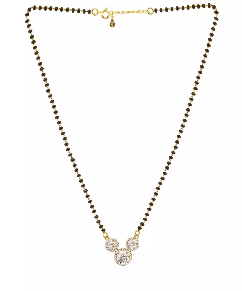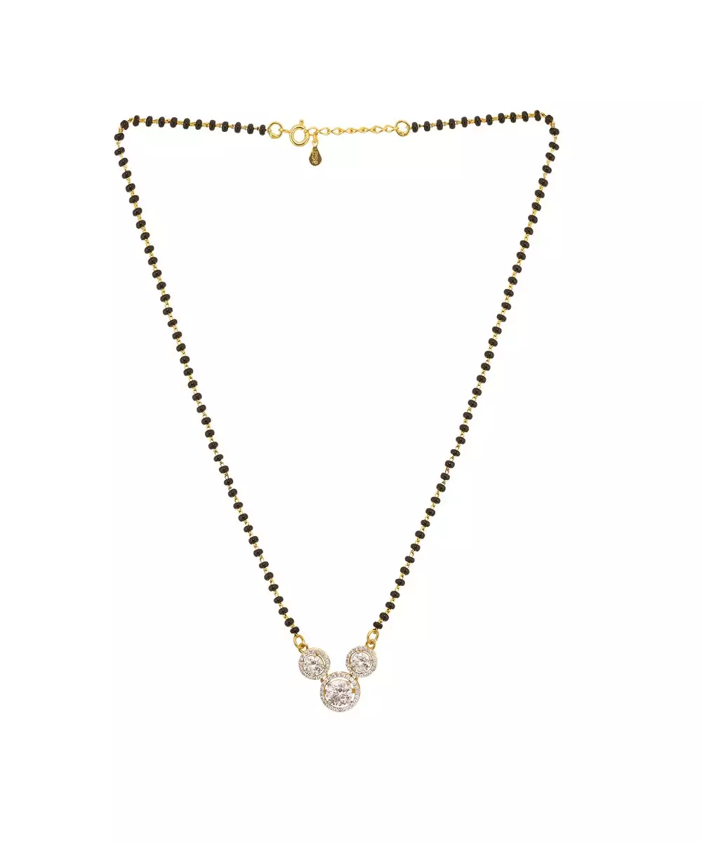 This Elegant Gold Plated Mangalsutra Symbolizes Love And Tradition With A Touch Of Modern Grace. Featuring A Sleek Black Bead Chain And A Beautifully Crafted Pendant, It Blends Timeless Design With Contemporary Style. Perfect For Daily Wear Or Special Occasions, It Adds Sophistication And Emotional Significance To Your Look.