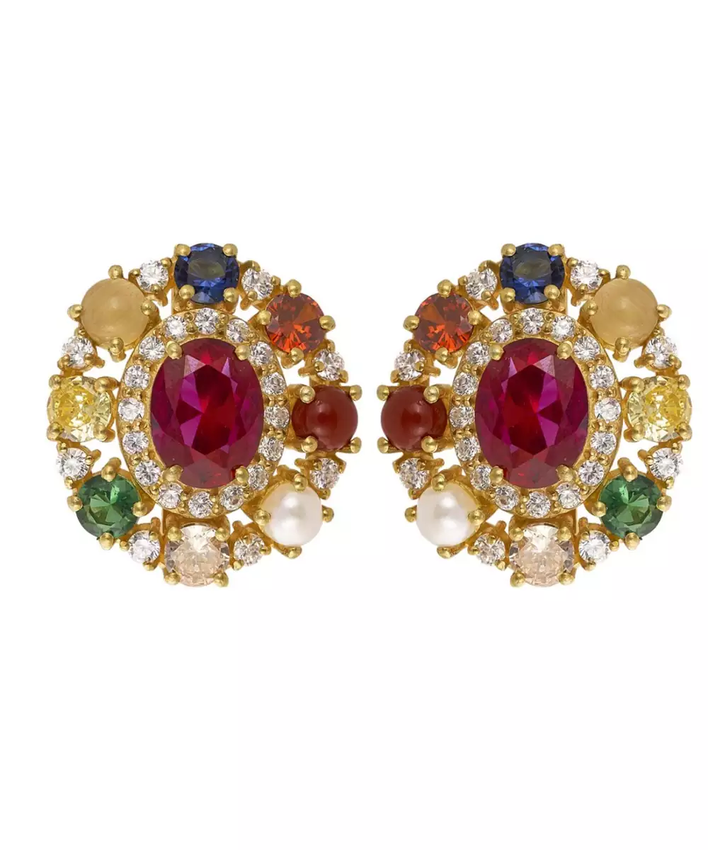 These Gold Plated Multicolor Stud Earrings In Sterling Silver Bring Vibrance And Charm To Any Look. Adorned With Colorful Stones That Sparkle Beautifully Against The Golden Finish, They Add A Playful Yet Elegant Touch. Lightweight And Durable, They’re Perfect For Brightening Up Everyday Outfits Or Enhancing Festive And Celebratory Ensembles.