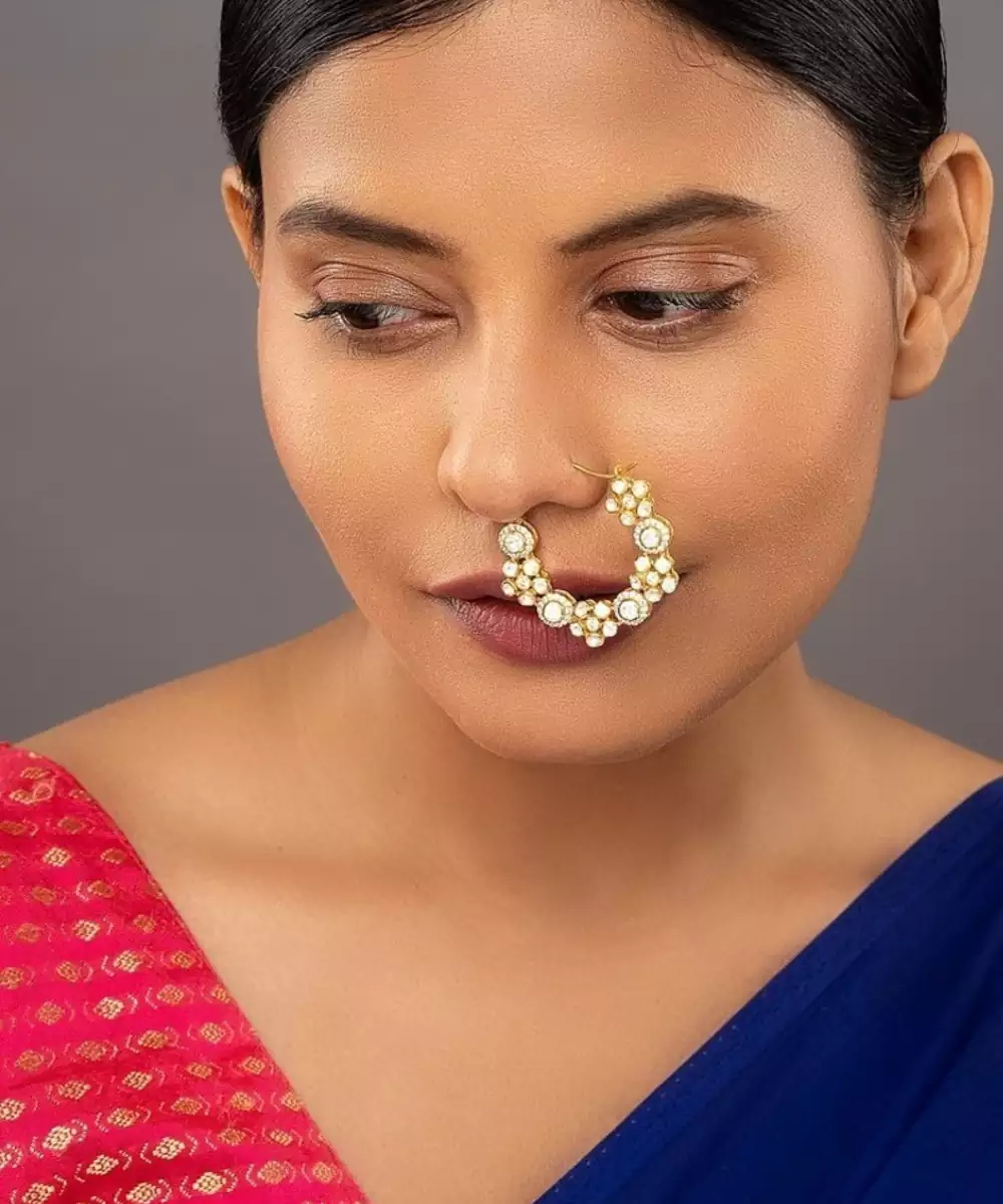 This Elegant Gold Plated Nose Ring Beautifully Blends Traditional Charm With Contemporary Style. Its Sleek, Polished Finish Adds A Subtle Sparkle To Your Look, Making It Perfect For Daily Wear Or Special Occasions. Lightweight, Skin Friendly, And Effortlessly Stylish, It Enhances Your Natural Beauty With A Touch Of Timeless Grace.