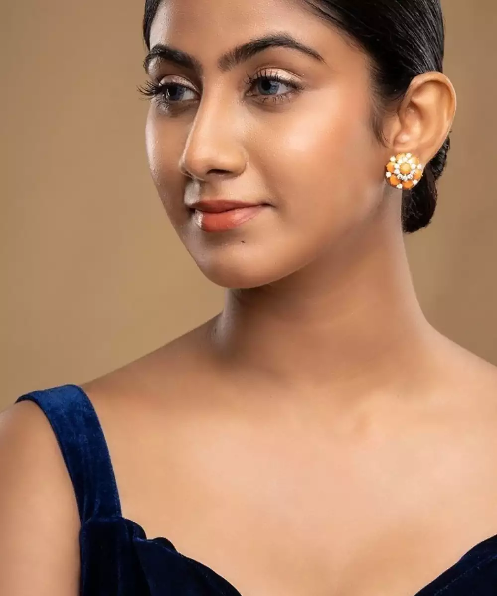 These Gold Plated Orange Stud Earrings In Sterling Silver Exude Vibrant Charm And Elegance. The Bright Orange Stones Beautifully Contrast With The Warm Gold Plating, Creating A Striking, Eye Catching Look. Crafted From High Quality Sterling Silver, They Are Durable, Lightweight, And Comfortable, Making Them Perfect For Daily Wear Or Special Occasions.