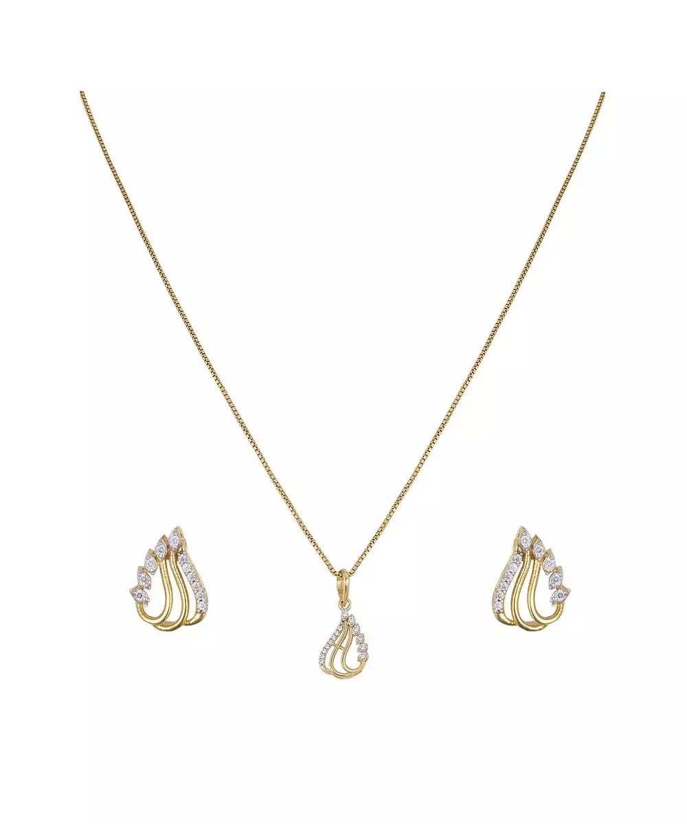 This Elegant Gold Plated Pendant Necklace Set Showcases Timeless Beauty And Refined Craftsmanship. Featuring A Sleek Pendant Paired With Matching Earrings, It Adds A Graceful Charm To Any Outfit. Perfect For Both Casual And Festive Occasions, This Set Enhances Your Look With A Touch Of Golden Sophistication And Elegance.