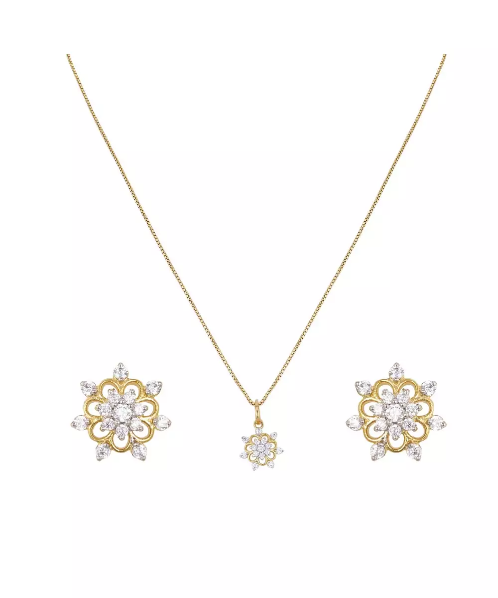 This Elegant Gold Plated Pendant Necklace Set Showcases Timeless Beauty And Refined Craftsmanship. Featuring A Sleek Pendant Paired With Matching Earrings, It Adds A Graceful Charm To Any Outfit. Perfect For Both Casual And Festive Occasions, This Set Enhances Your Look With A Touch Of Golden Sophistication And Elegance.