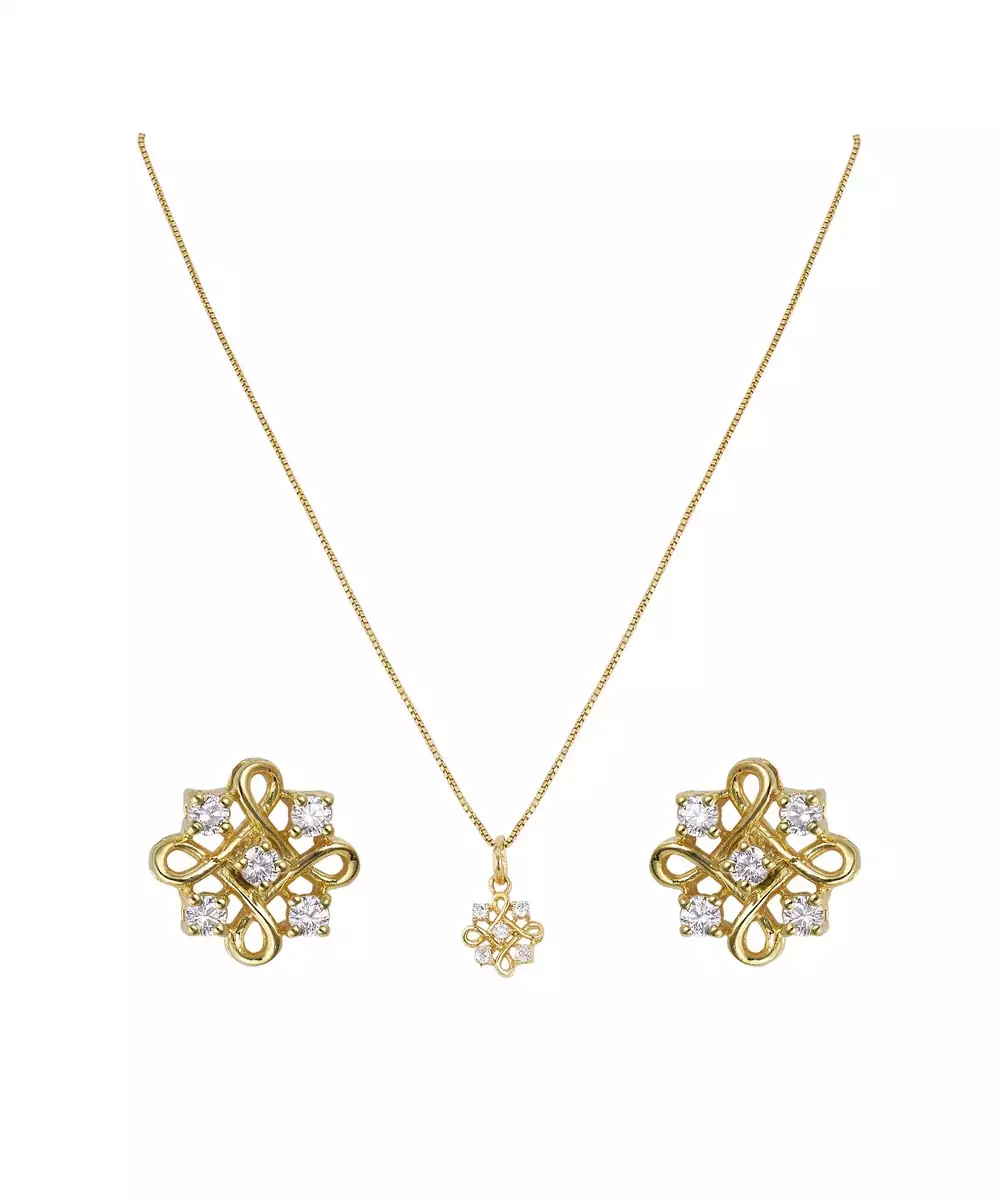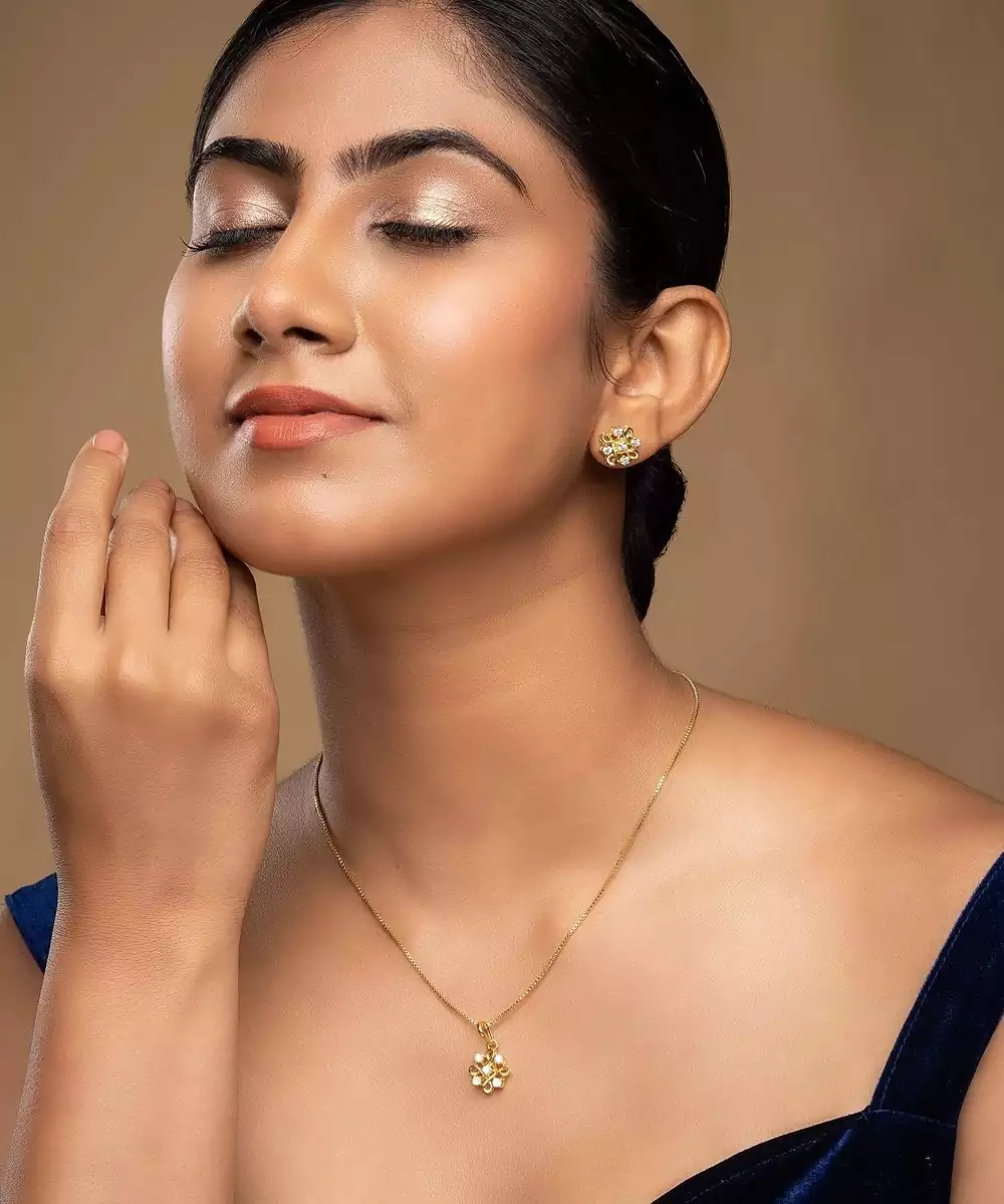 This Elegant Gold Plated Pendant Necklace Set Showcases Timeless Beauty And Refined Craftsmanship. Featuring A Sleek Pendant Paired With Matching Earrings, It Adds A Graceful Charm To Any Outfit. Perfect For Both Casual And Festive Occasions, This Set Enhances Your Look With A Touch Of Golden Sophistication And Elegance.