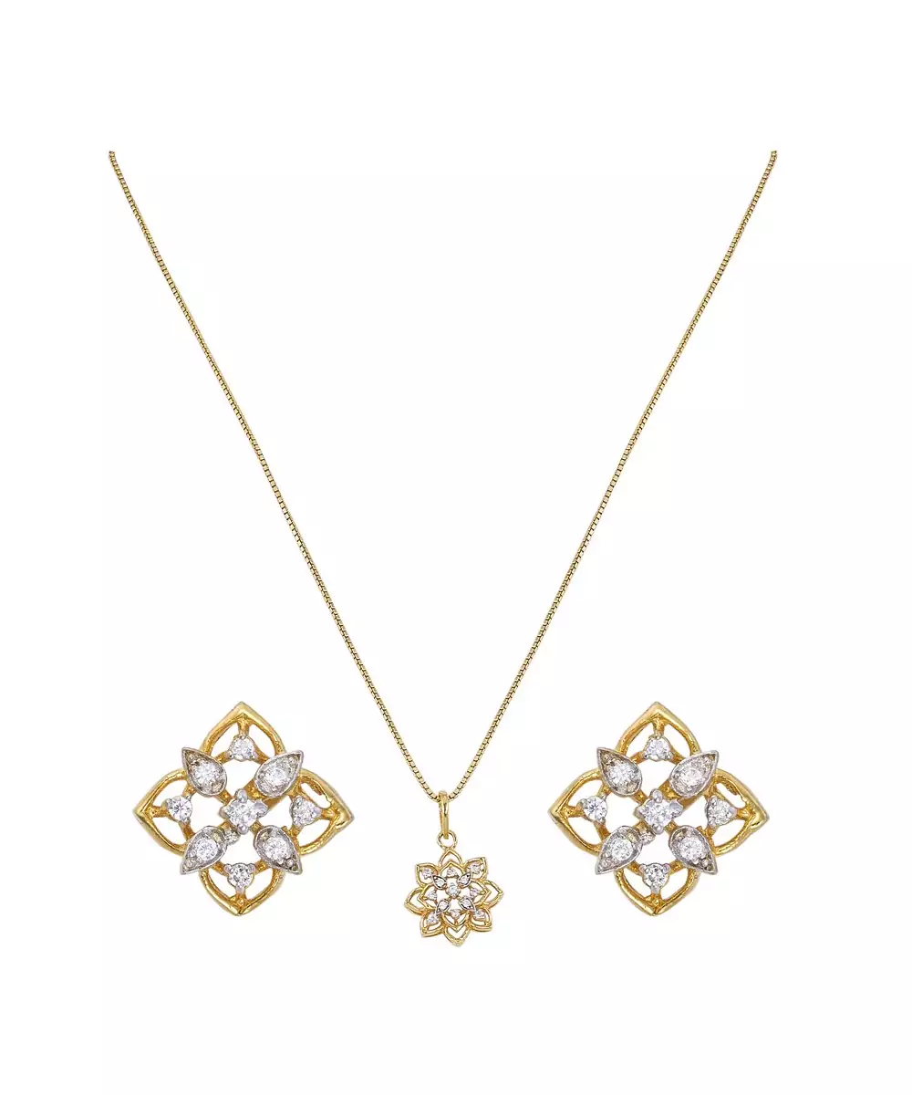 This Elegant Gold Plated Pendant Necklace Set Showcases Timeless Beauty And Refined Craftsmanship. Featuring A Sleek Pendant Paired With Matching Earrings, It Adds A Graceful Charm To Any Outfit. Perfect For Both Casual And Festive Occasions, This Set Enhances Your Look With A Touch Of Golden Sophistication And Elegance.