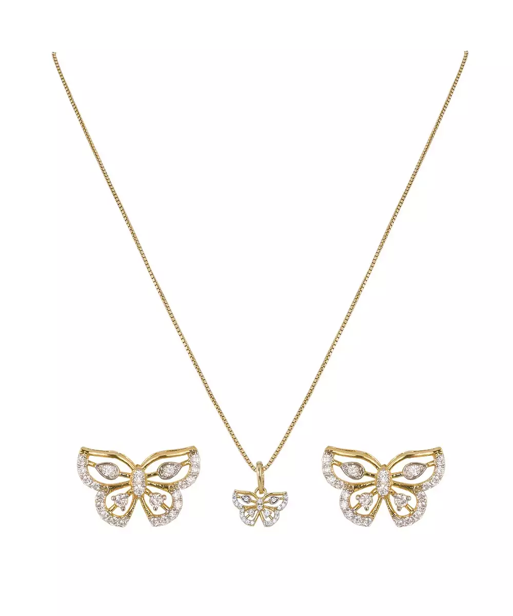 This Elegant Gold Plated Pendant Necklace Set Showcases Timeless Beauty And Refined Craftsmanship. Featuring A Sleek Pendant Paired With Matching Earrings, It Adds A Graceful Charm To Any Outfit. Perfect For Both Casual And Festive Occasions, This Set Enhances Your Look With A Touch Of Golden Sophistication And Elegance.