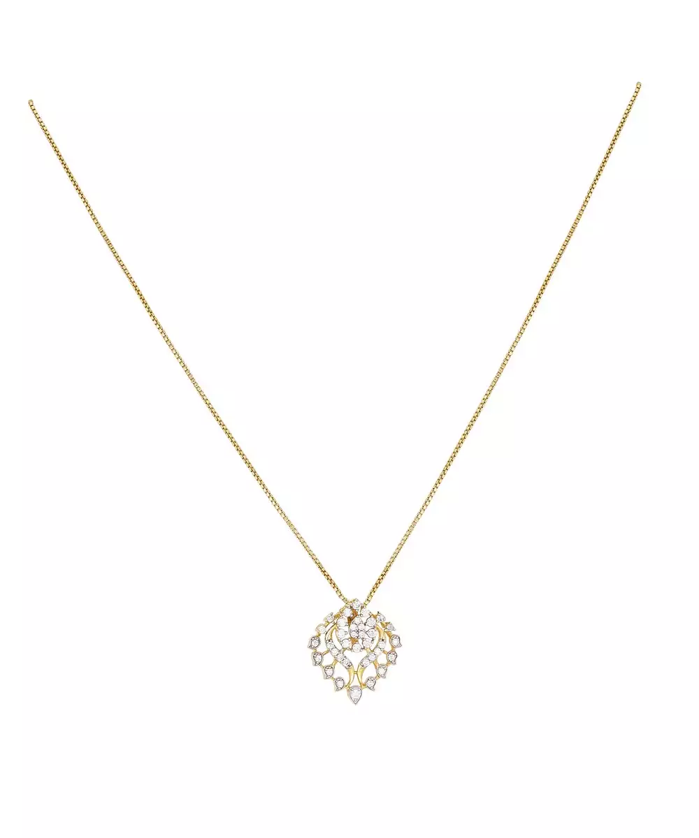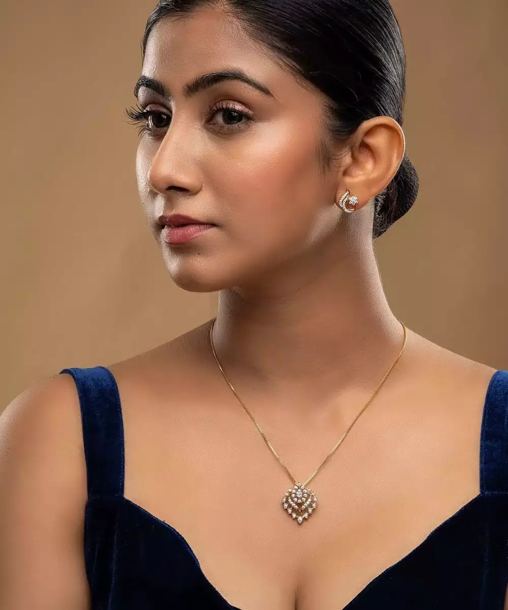 This Elegant Gold Plated Pendant Necklace Set Showcases Timeless Beauty And Refined Craftsmanship. Featuring A Sleek Pendant Paired With Matching Earrings, It Adds A Graceful Charm To Any Outfit. Perfect For Both Casual And Festive Occasions, This Set Enhances Your Look With A Touch Of Golden Sophistication And Elegance.