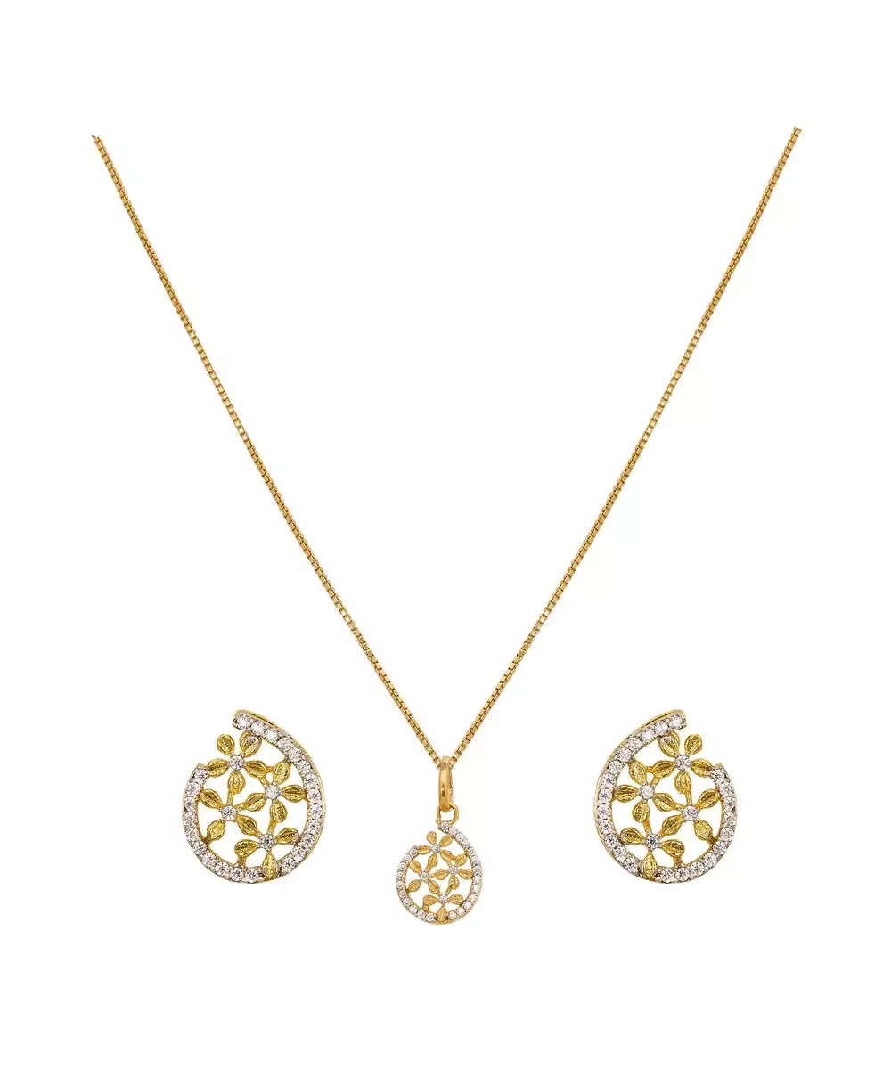This Elegant Gold Plated Pendant Necklace Set Showcases Timeless Beauty And Refined Craftsmanship. Featuring A Sleek Pendant Paired With Matching Earrings, It Adds A Graceful Charm To Any Outfit. Perfect For Both Casual And Festive Occasions, This Set Enhances Your Look With A Touch Of Golden Sophistication And Elegance.