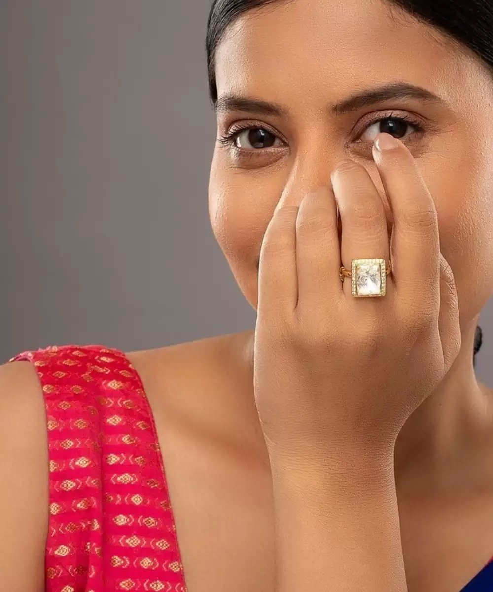 This Stunning Gold Plated Ring Exudes Elegance And Charm With Its Radiant Finish And Refined Craftsmanship. Designed To Elevate Any Look, It Blends Modern Style With Classic Appeal. Perfect For Daily Wear Or Special Occasions, This Ring Adds A Touch Of Luxury And Sophistication To Your Jewelry Collection Effortlessly.