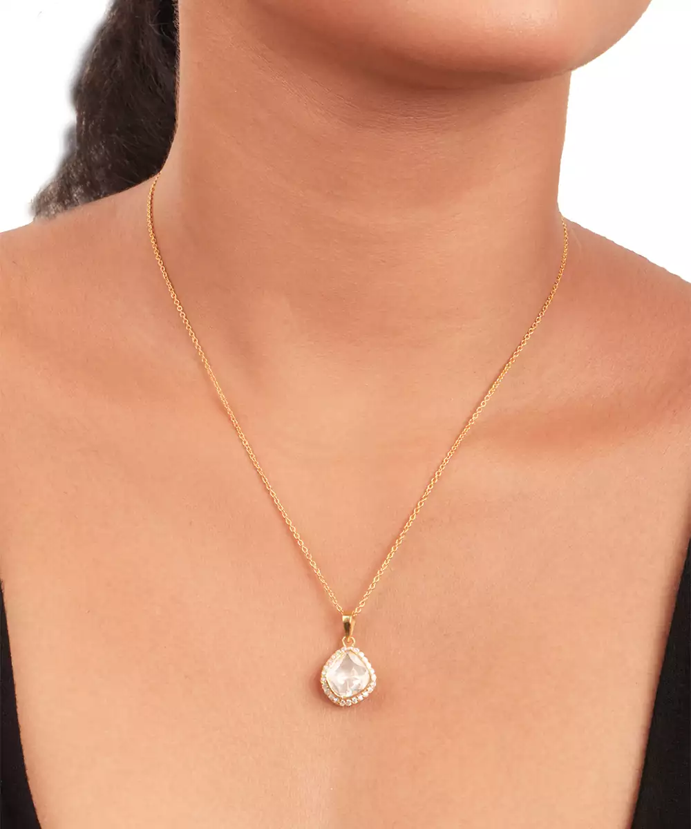 This Pendant Is Handcrafted In 925 Silver And Embellished With Moissanite Polki And Zircons.
