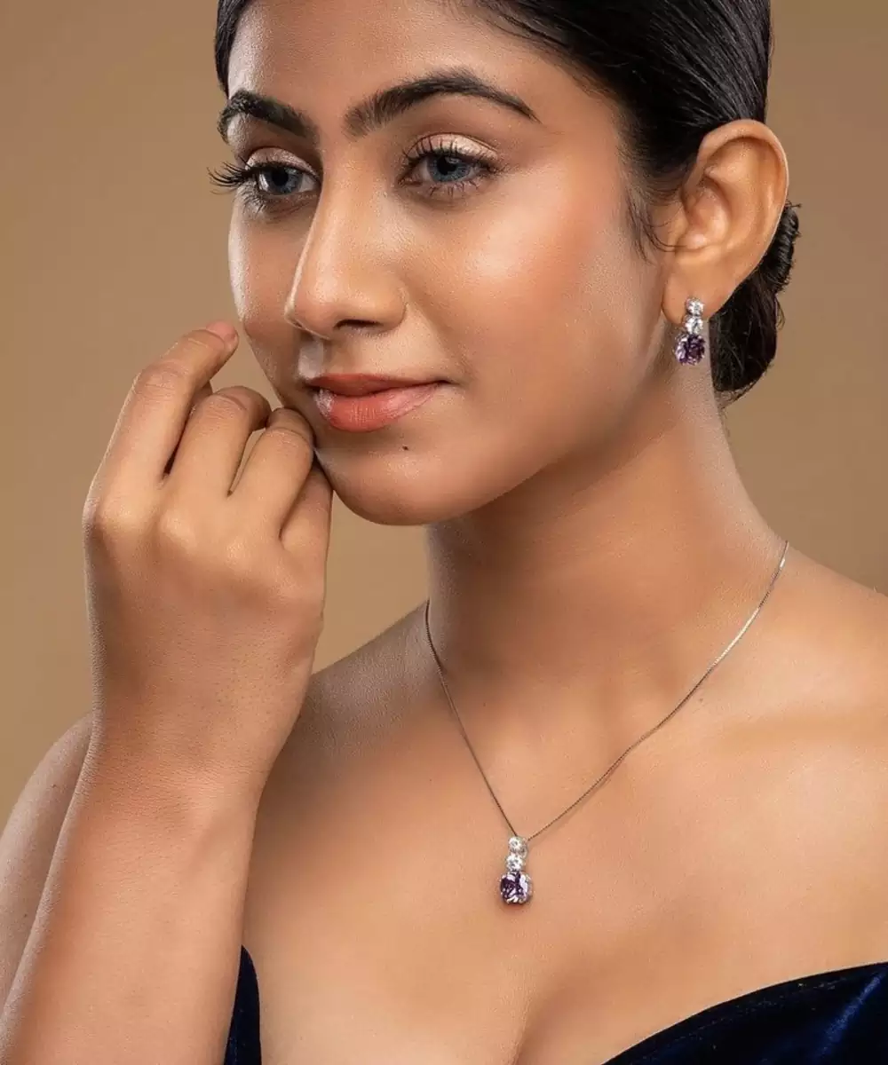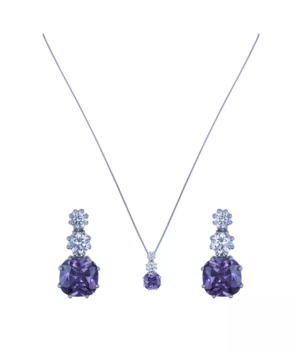 Silver Plated Blue Stone Pendant Necklace Set In Sterling Silver