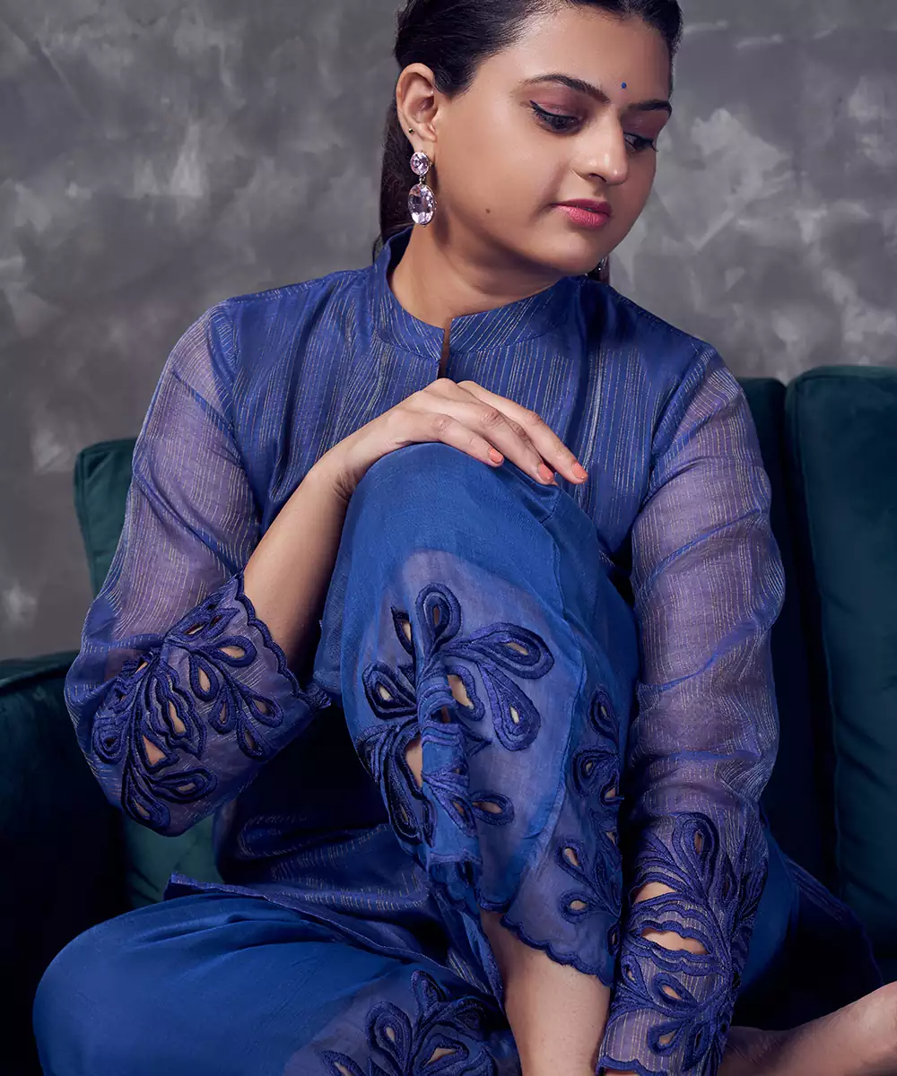 Featuring A Blue Colour Kurta & Pant In Maheshwari Zari Line Silk With Heavy Cutwork On Sleeves & Pant