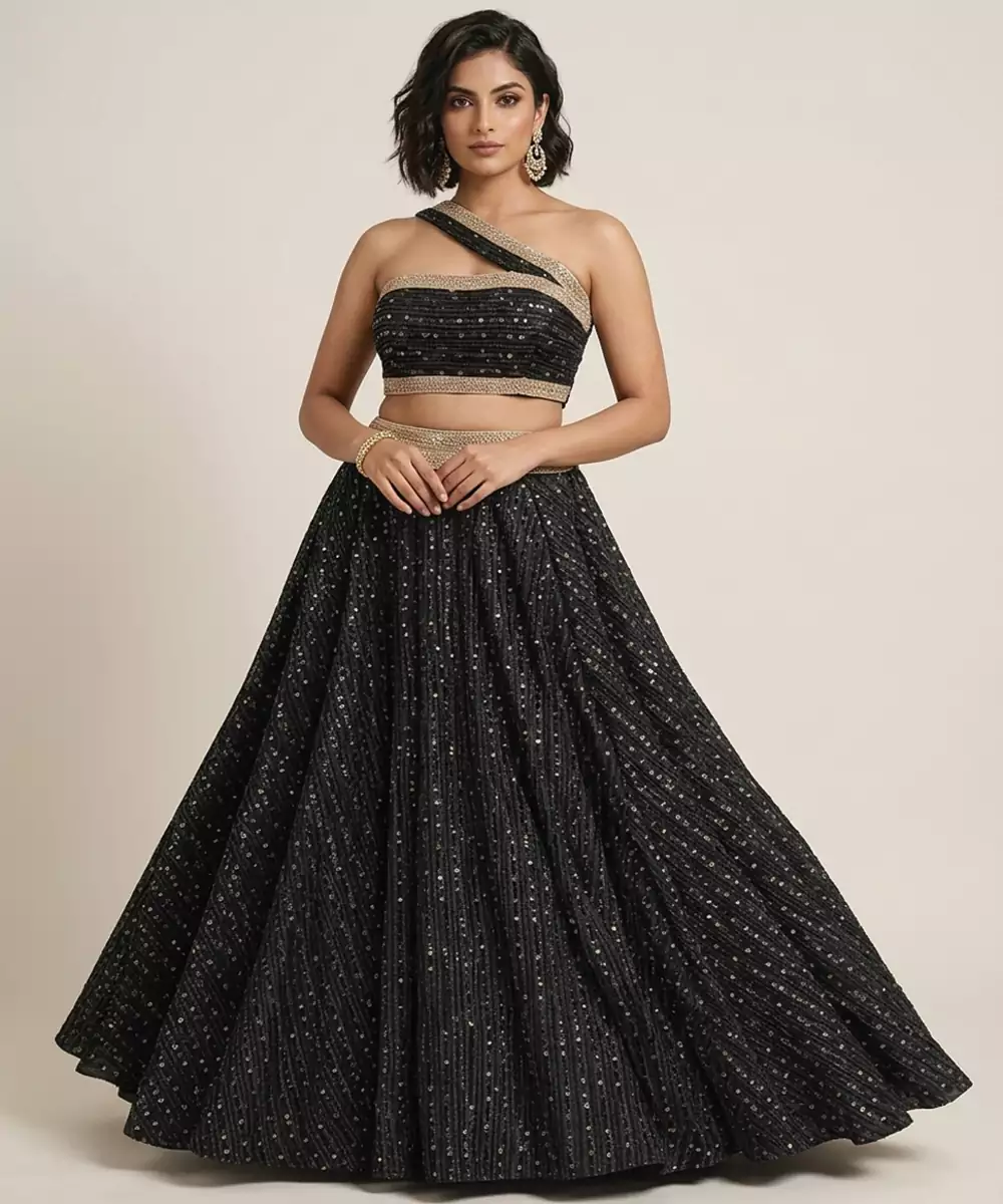 Black Sequin Embellished Shimmer Lehenga Set
