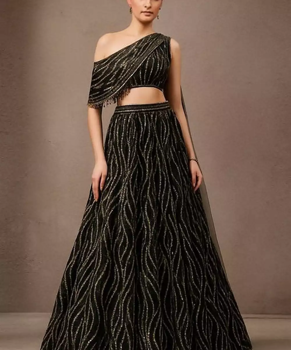 Black Sequin Embroidered Net Lehenga Set