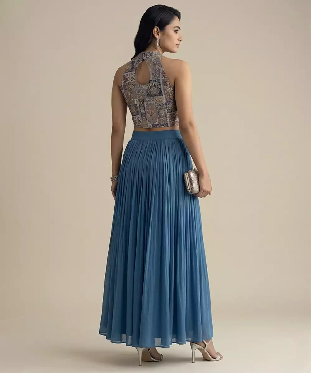 This Blue Silk Co Ord Set Showcases Fine Embroidery That Enhances Its Sophisticated Appeal. Designed With A Sleek Silhouette, It Offers Both Comfort And Elegance. Perfect For Festive Gatherings Or Evening Events, It Can Be Styled With Minimal Accessories For A Refined And Contemporary Look.