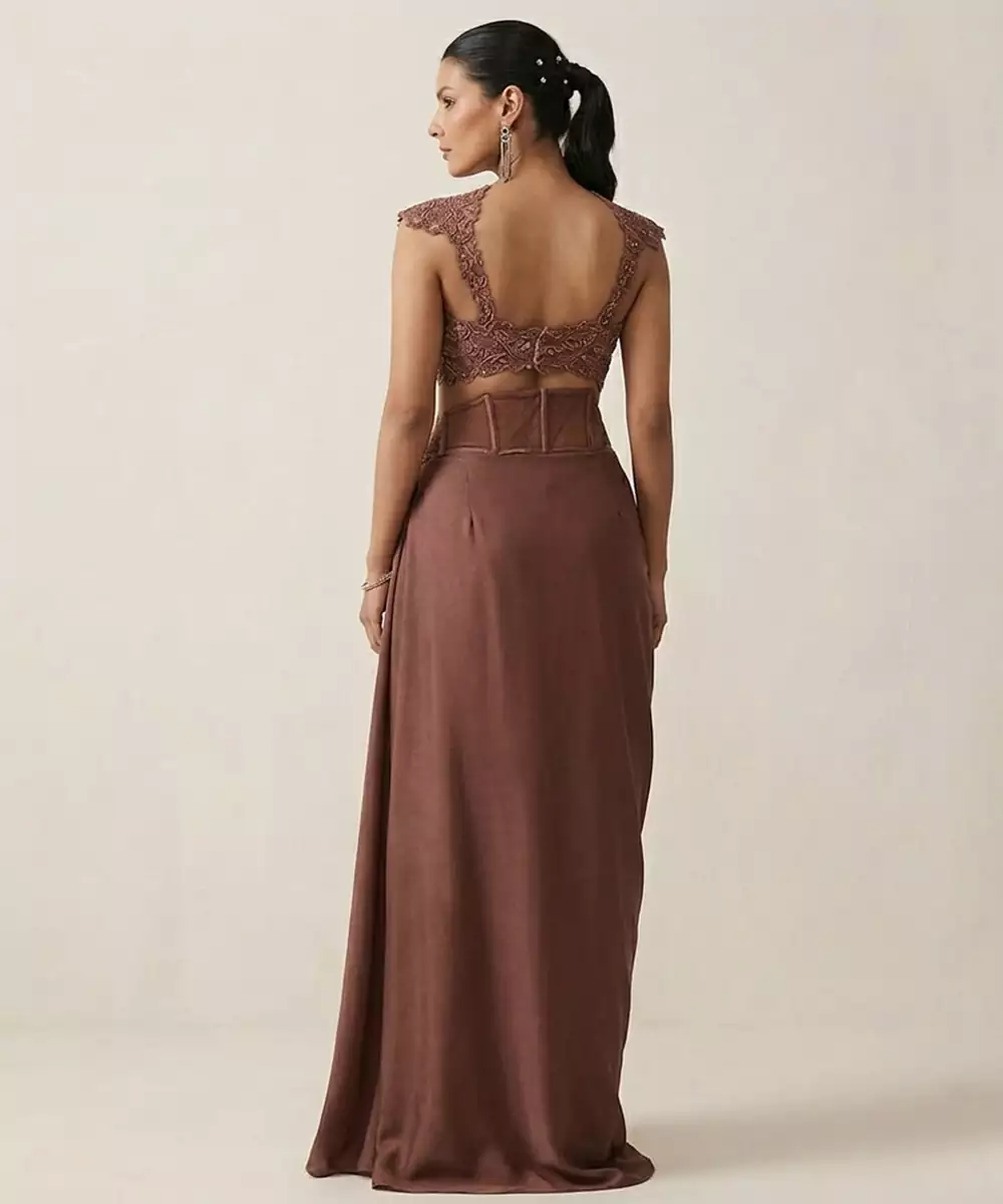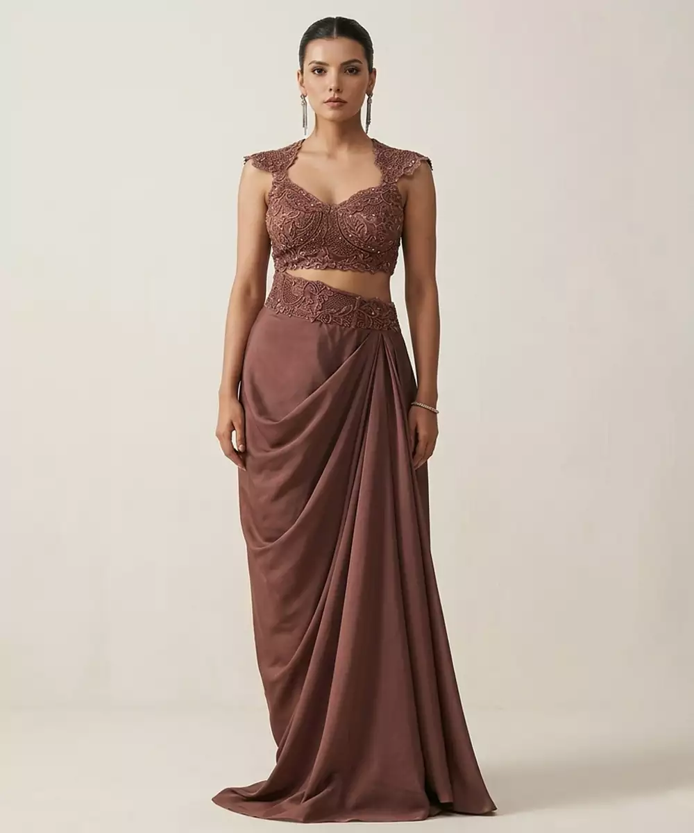 This Brown Satin Co Ord Set Features Refined Embroidery That Adds Depth To Its Elegant Design. The Smooth Fabric Provides A Luxurious Feel And Comfortable Fit. Perfect For Festive Or Semi Formal Occasions, It Pairs Beautifully With Subtle Accessories For A Graceful And Modern Appearance.