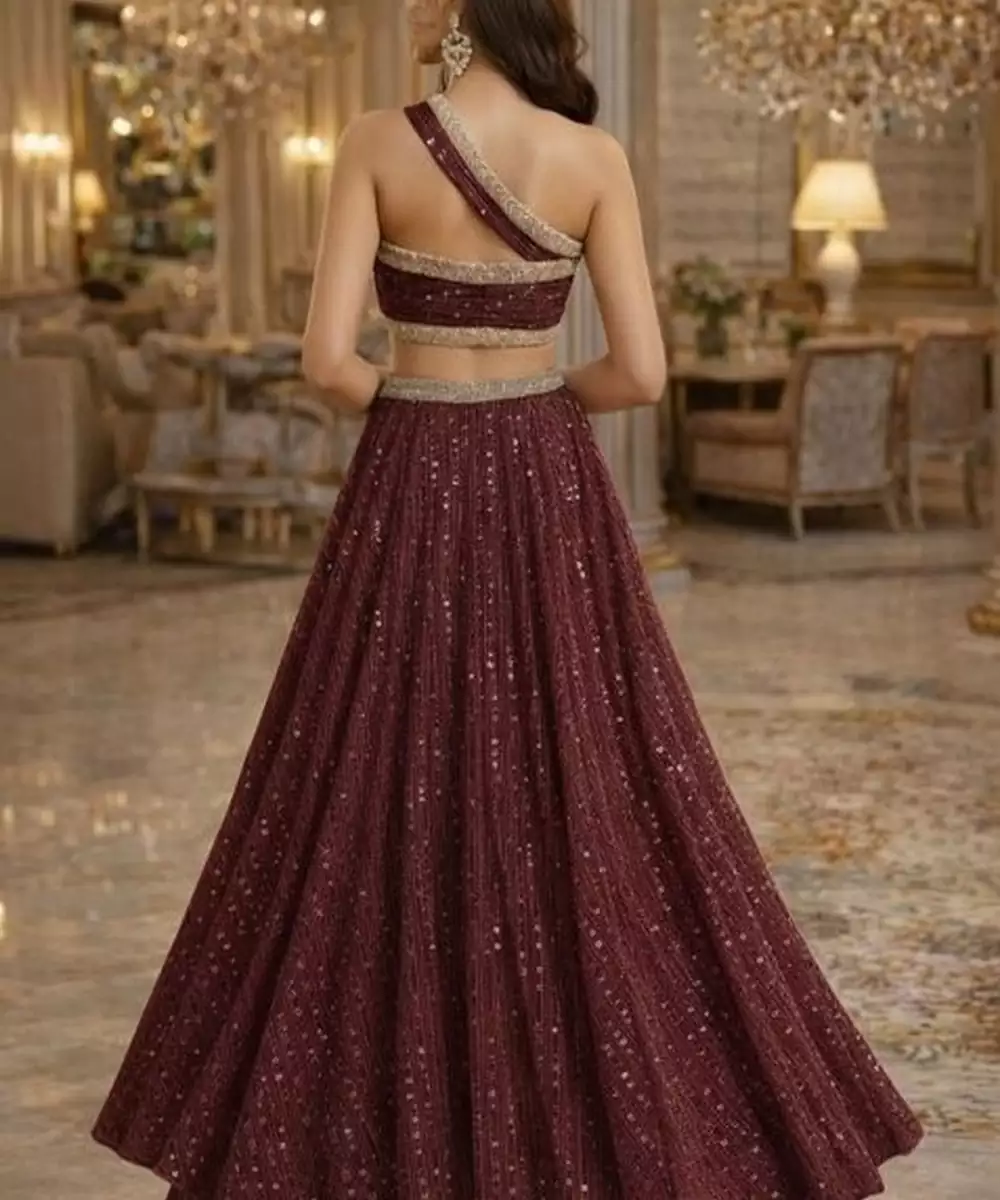 Deep Maroon Sequin Embellished Shimmer Lehenga Set
