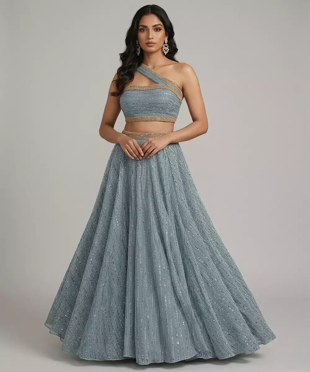 Dusty Blue Sequin Embellished Shimmer Lehenga Set