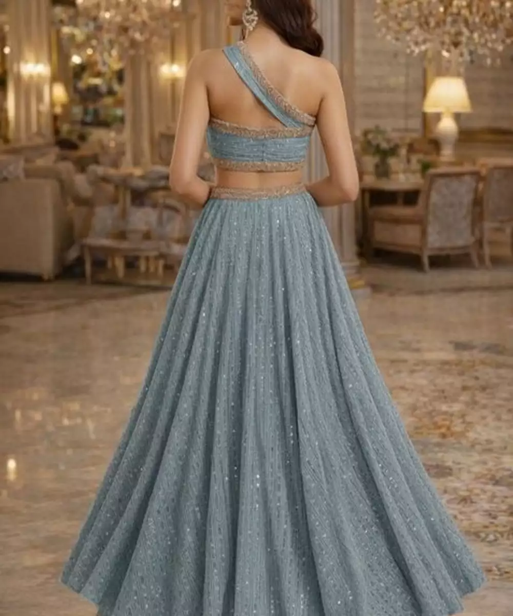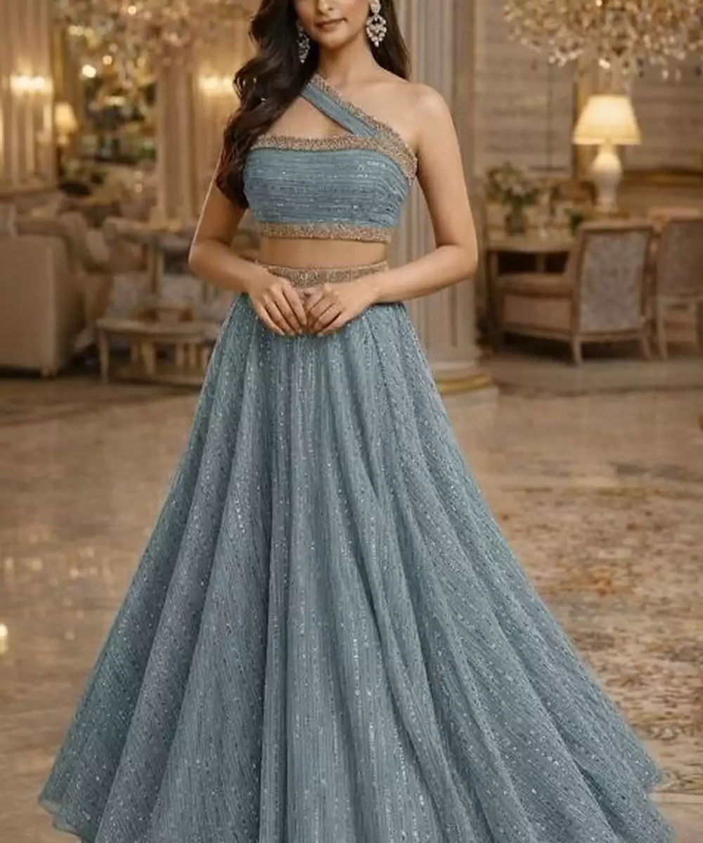 Dusty Blue Sequin Embellished Shimmer Lehenga Set