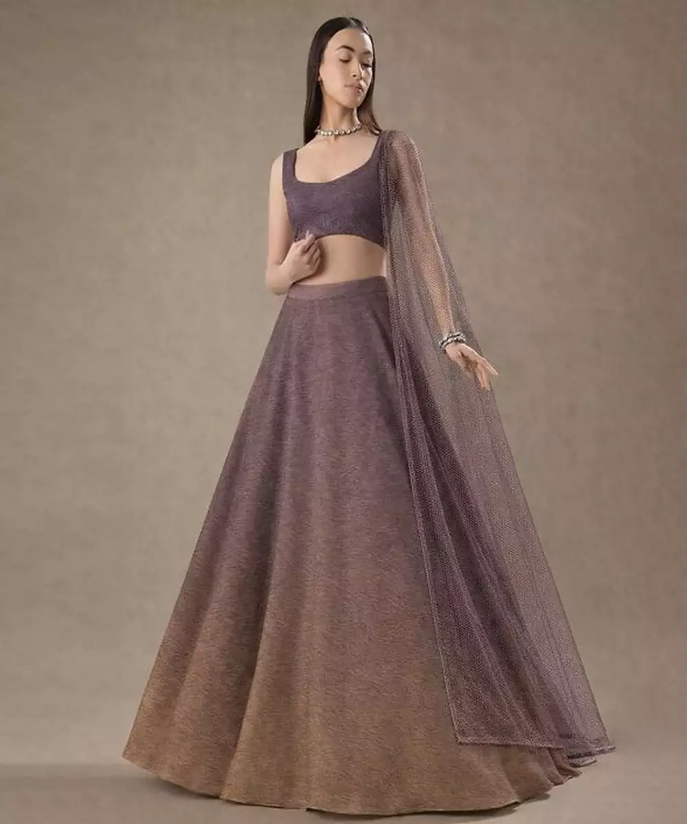 This Dusty Plum Tissue Lehenga Set Showcases Subtle Sheen And Refined Elegance. Perfect For Festive Occasions And Evening Celebrations. Colour: Plum Fabric :Tissue Components: 1 Blouse / 1 Lehenga / 1 Dupatta