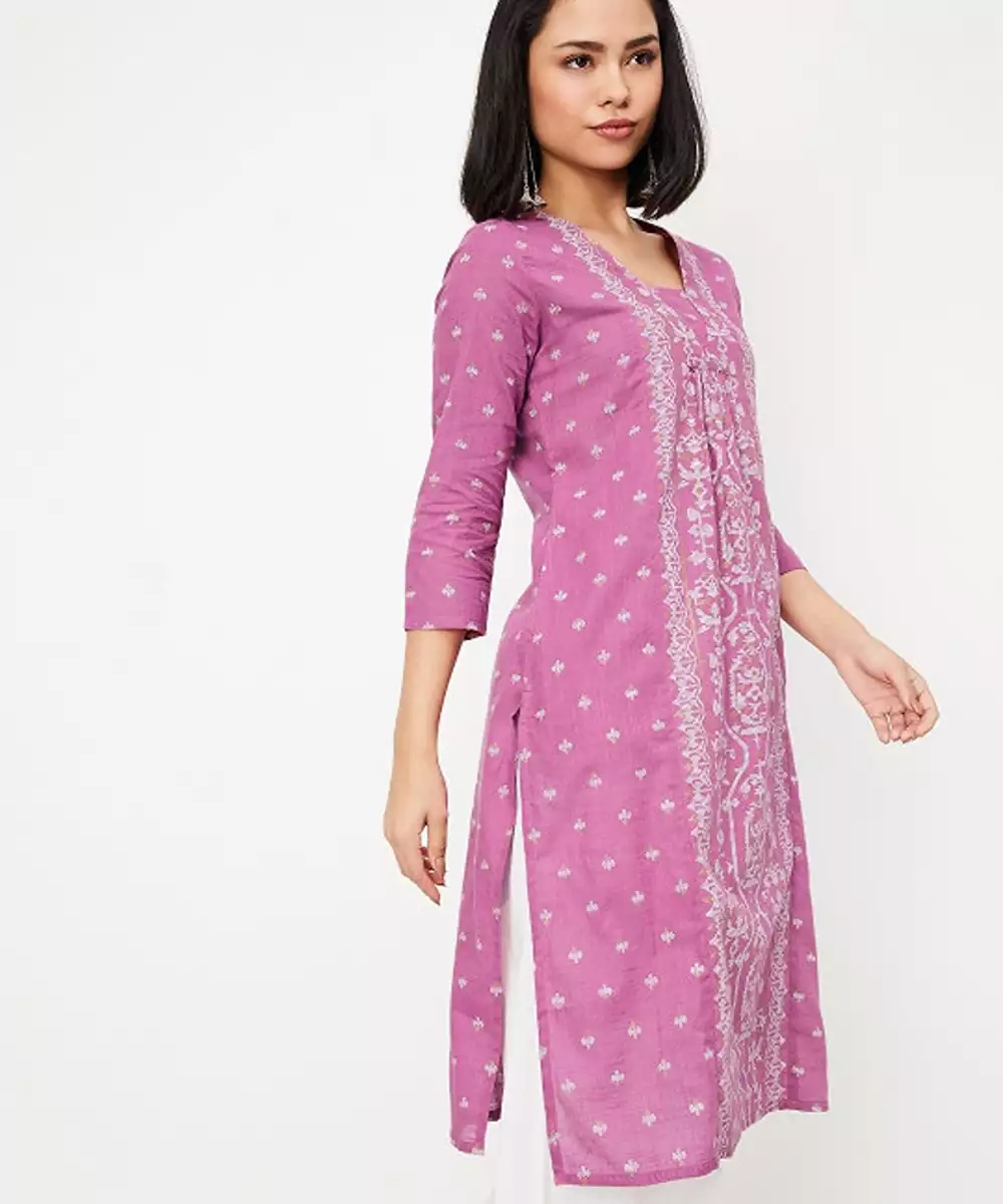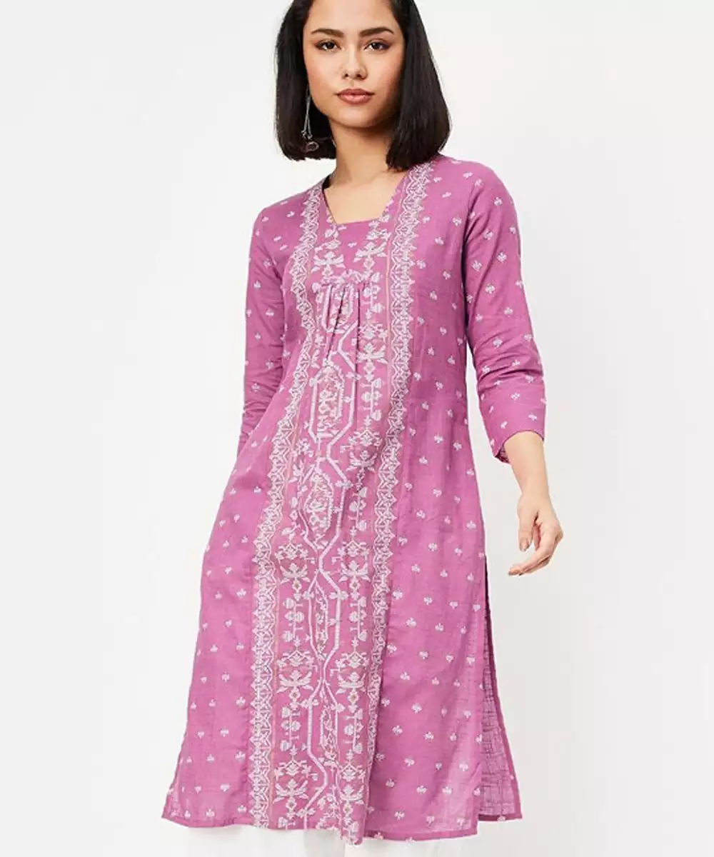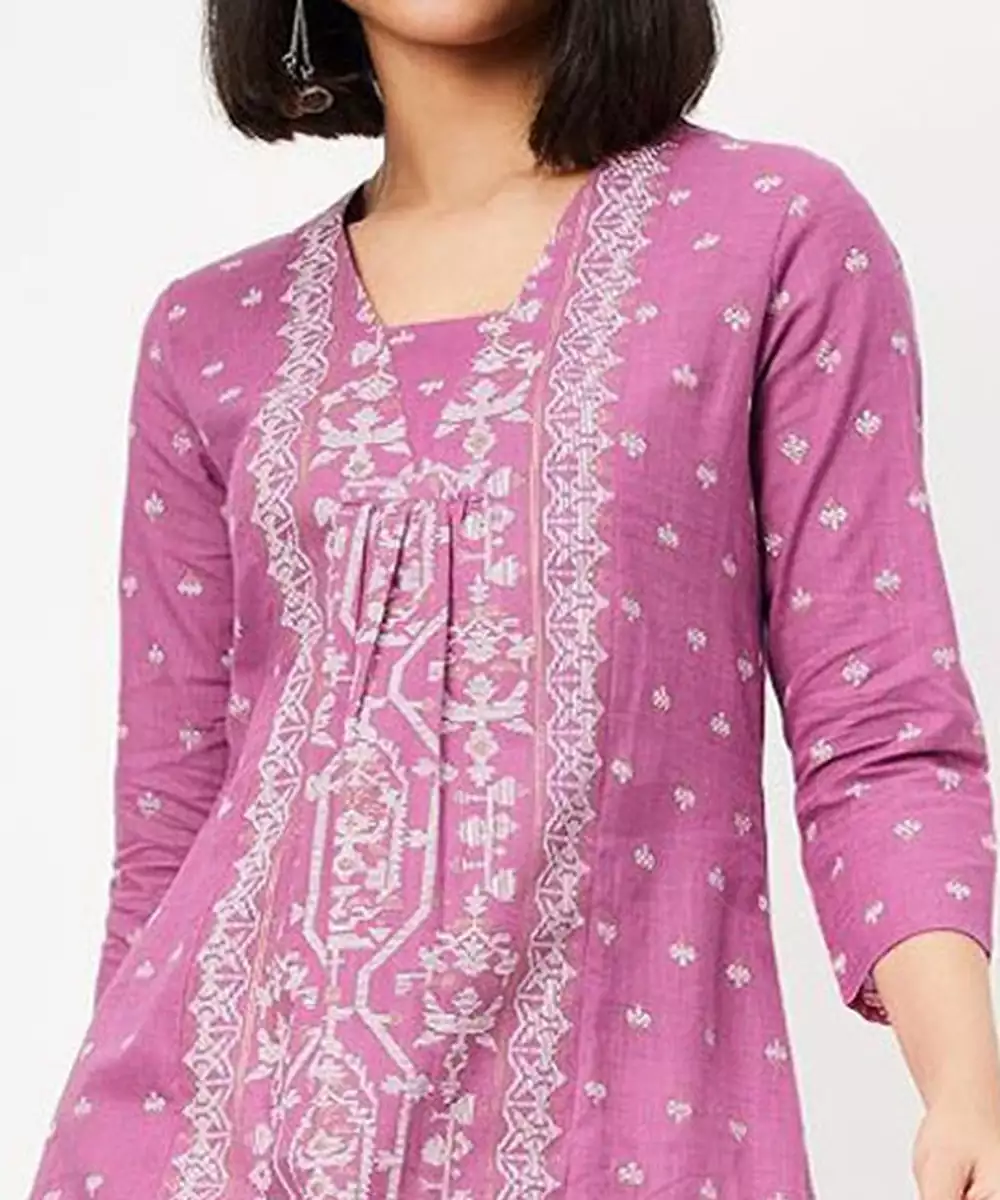 Ethnic Motifs Woven Design Pleated V Neck Straight Kurta