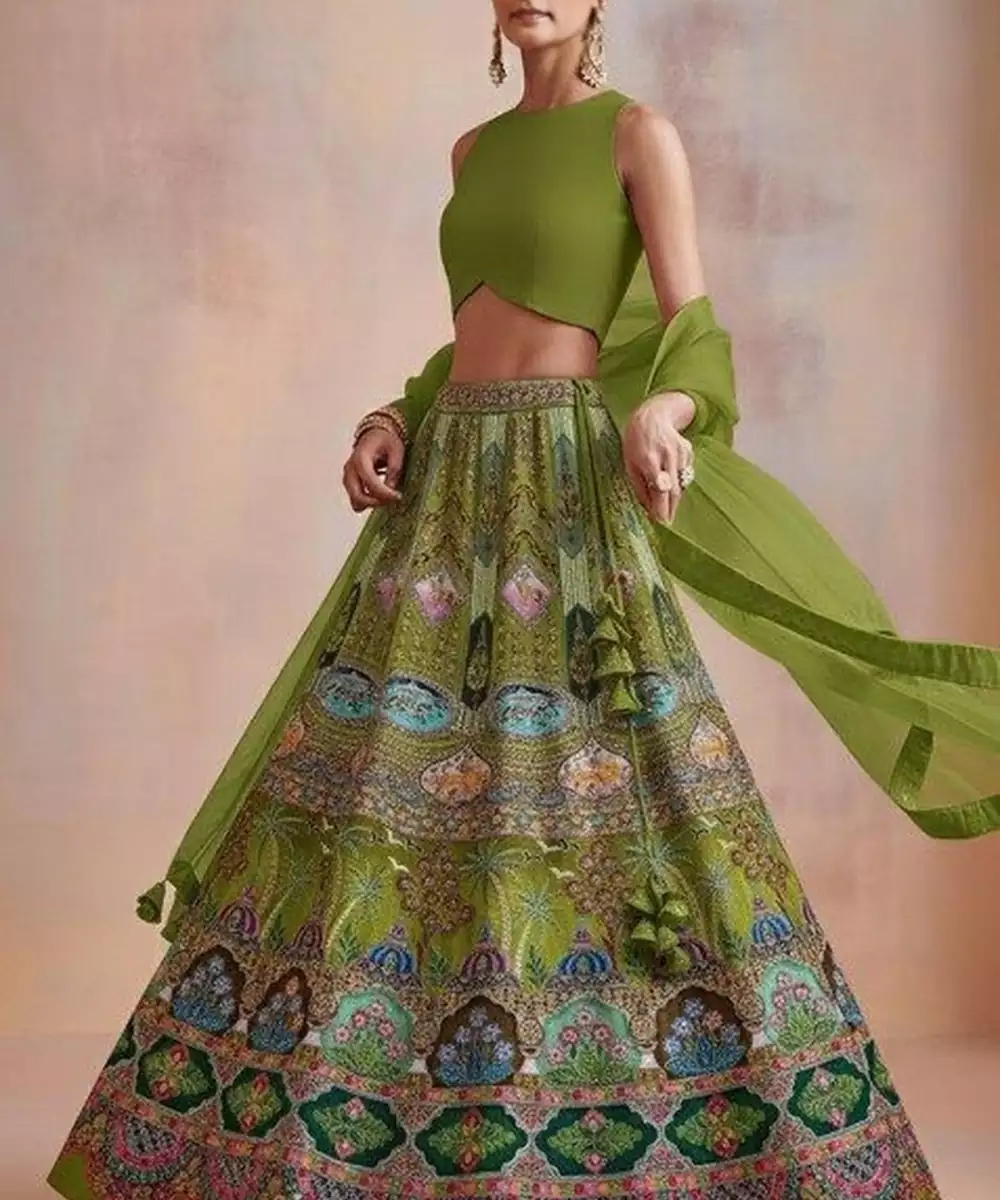 Green Embroidered Crepe Lehenga Set