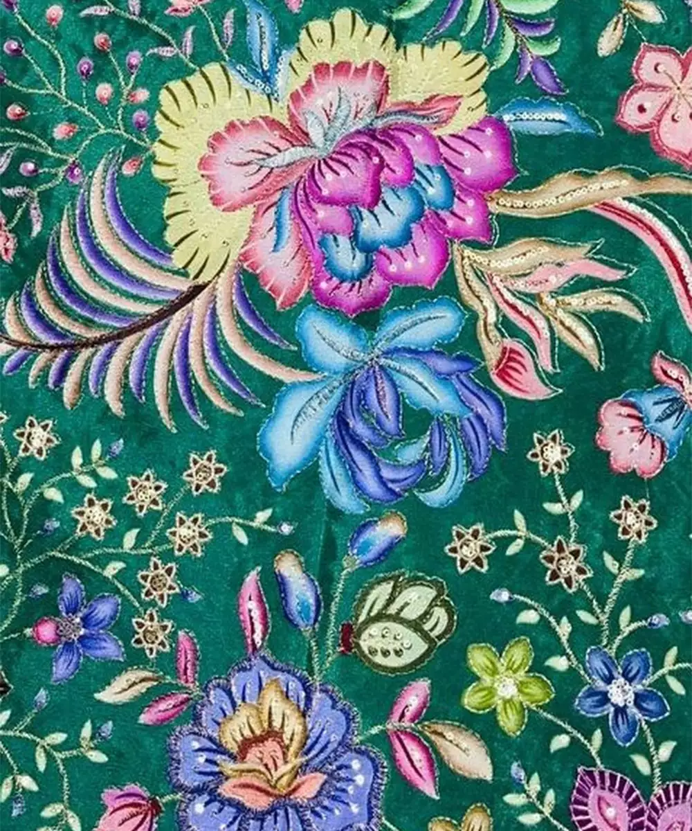 This Green Chinon Sharara Set Features Vibrant Prints That Create A Lively Ethnic Look. The Flowy Fabric Ensures Comfort While The Flared Silhouette Adds Elegance. Ideal For Festive Occasions, Cultural Gatherings, And Joyful Celebrations.