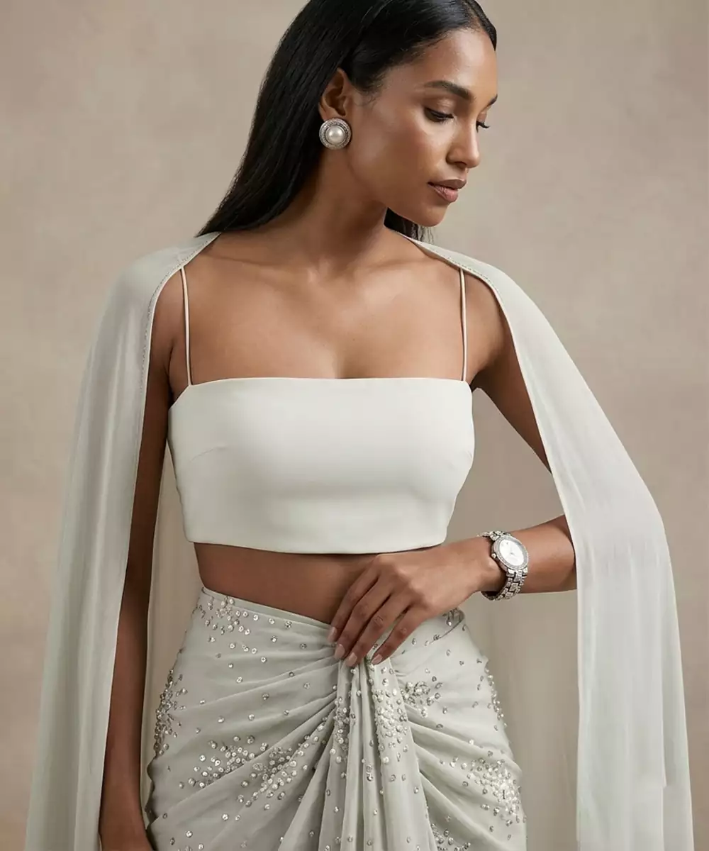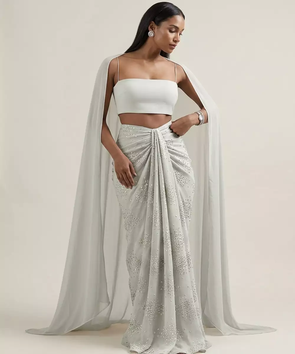 Components: 1 Crop Top / 1 Draped Skirt / 1 Cape