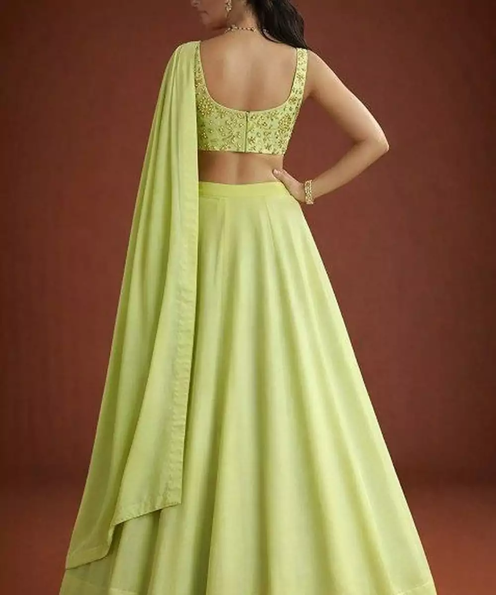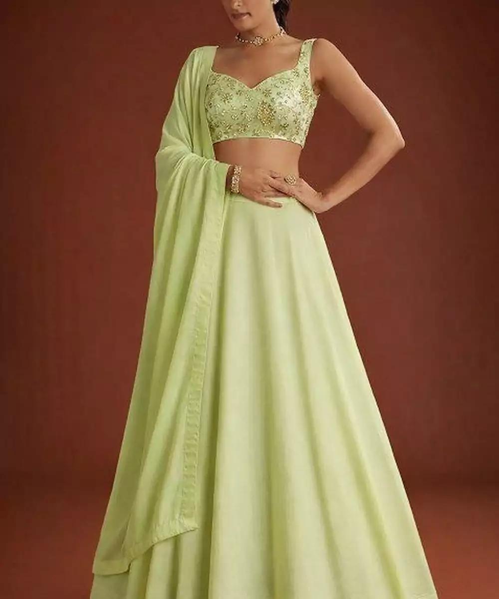 Light Green Embroidered Georgette Lehenga Set