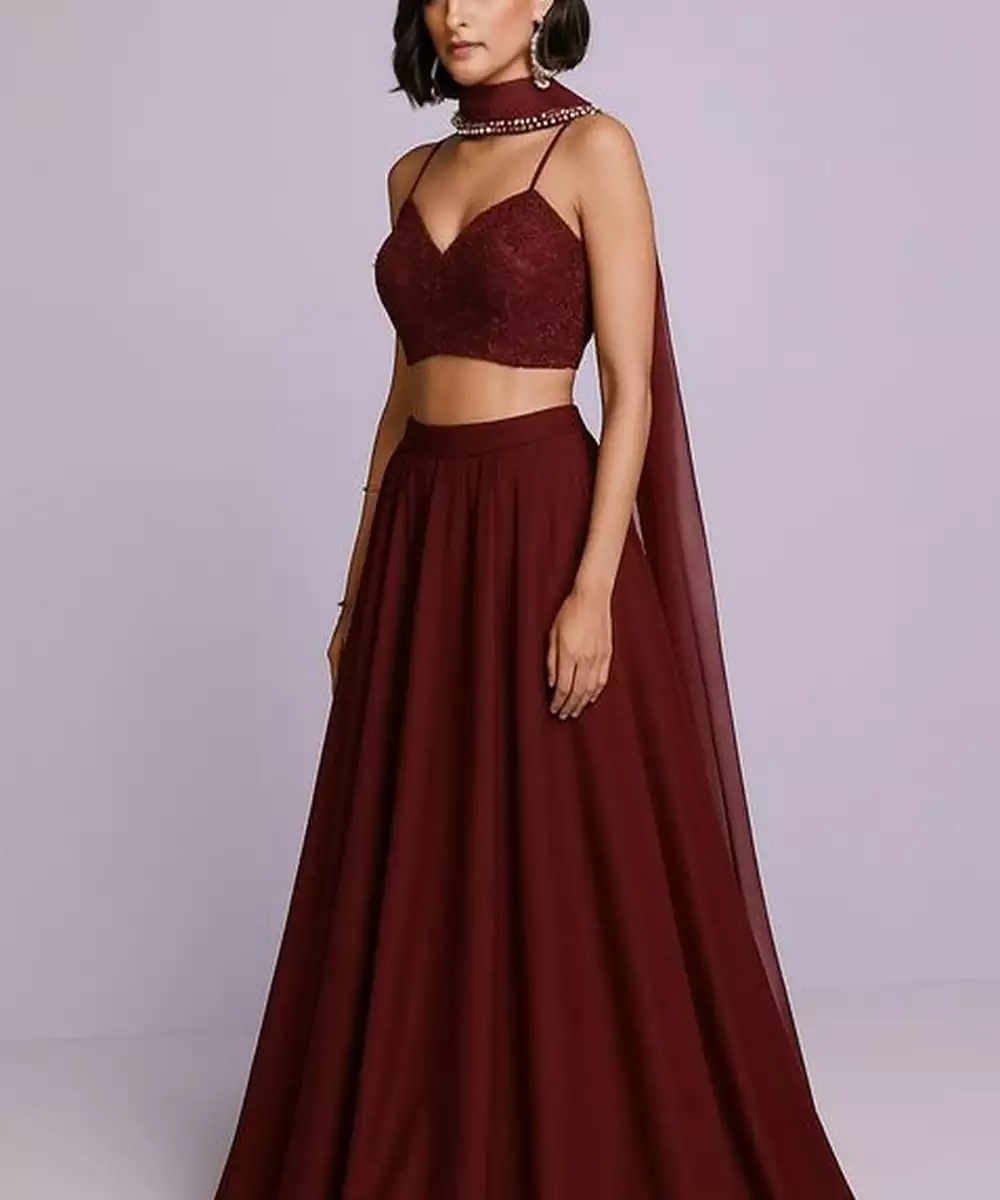 Maroon Embellished Blouse Georgette Lehenga Set