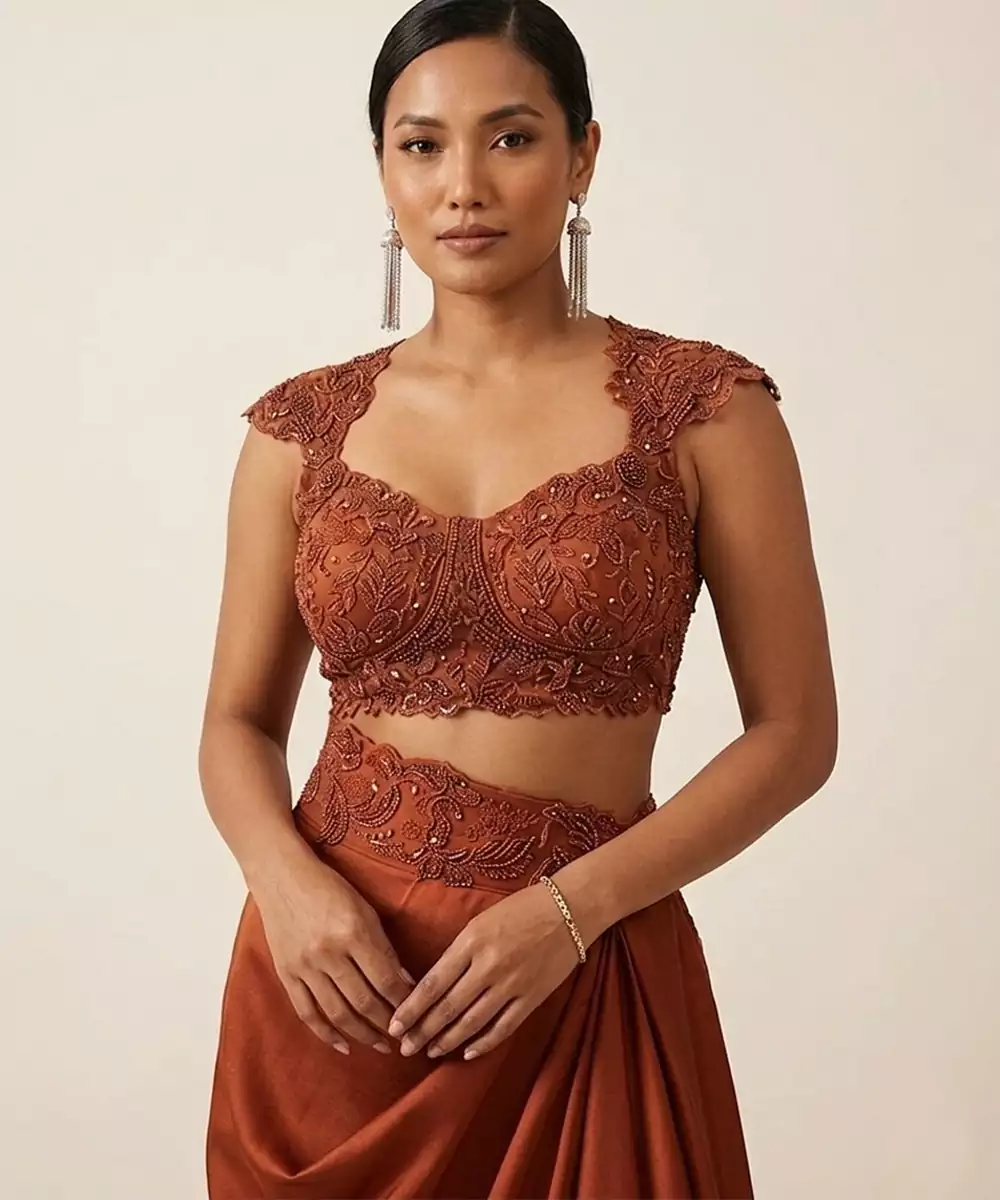 This Maroon Satin Co Ord Set Showcases Intricate Embroidery That Enhances Its Rich Appeal. The Soft Sheen Of The Fabric Adds Elegance, While The Silhouette Ensures Comfort. Ideal For Festive Occasions, It Pairs Effortlessly With Statement Accessories For A Sophisticated And Stylish Look.