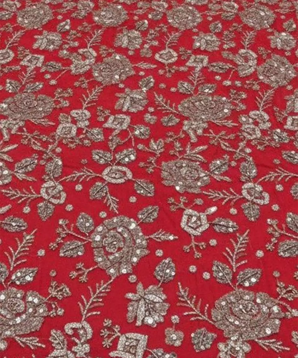 Crafted In Luminous Tissue Fabric, This Maroon Lehenga Set Exudes Understated Luxury. The Subtle Sheen Enhances The Deep Color While The Flared Silhouette Adds Regal Elegance. Paired With A Matching Blouse And Dupatta, It Is Perfect For Weddings, Festive Evenings, And Traditional Celebrations With Sophisticated Charm.