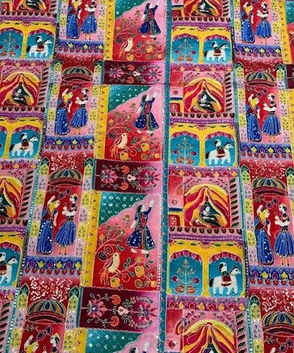 This Multicolor Chinon Co Ord Set Showcases Vibrant Prints For A Lively Festive Look. The Flowy Fabric Adds Comfort And Elegance While Maintaining A Modern Silhouette. Perfect For Festive Outings, Parties, And Cultural Events With Bold And Cheerful Styling.