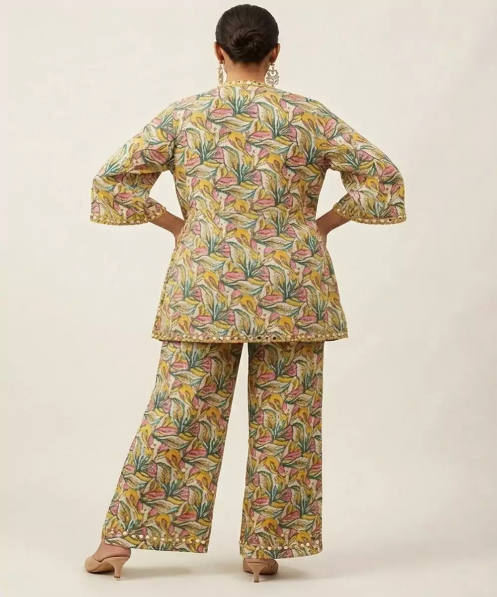 This Multicolor Crepe Co Ord Set Features Vibrant Prints That Add A Playful And Stylish Touch. The Lightweight Fabric Ensures Comfort, While The Modern Silhouette Offers Versatility. Perfect For Casual Outings Or Festive Occasions, It Pairs Effortlessly With Minimal Accessories For A Trendy Look.