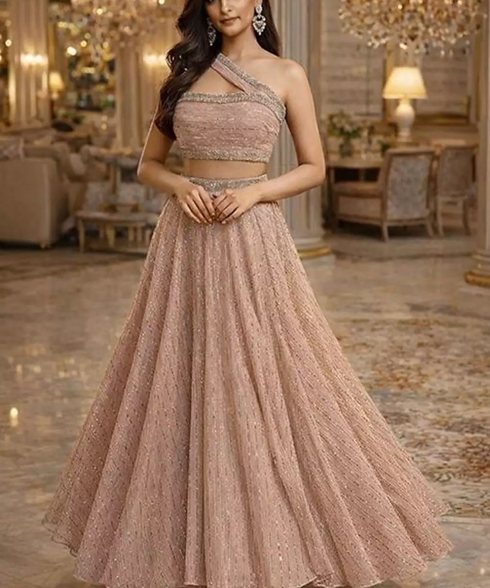 Peach Sequin Embellished Shimmer Lehenga Set