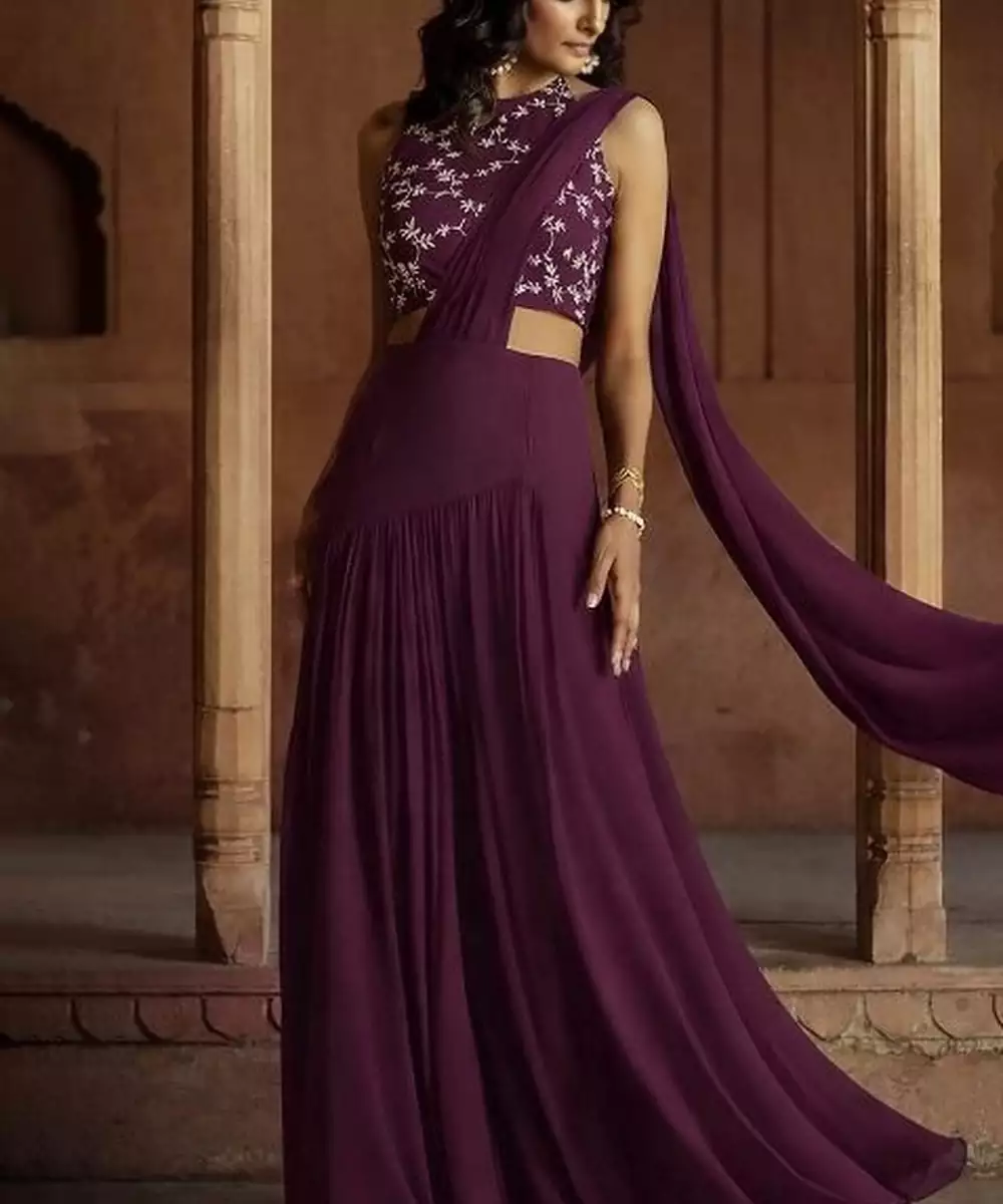 Purple Embroidered Crepe Lehenga Set