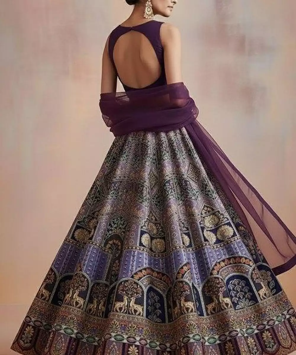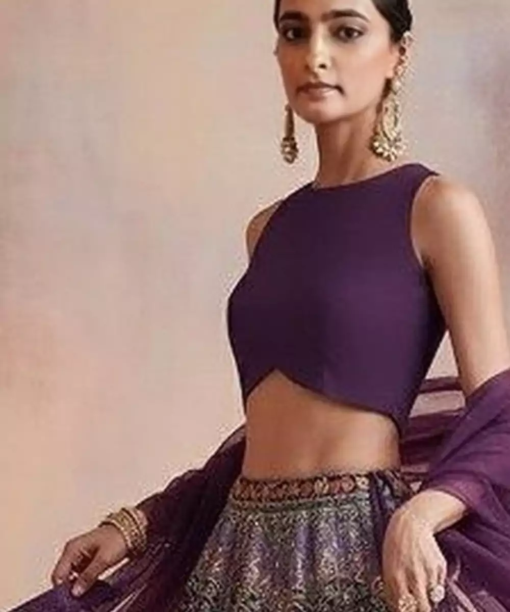 Purple Embroidered Crepe Lehenga Set