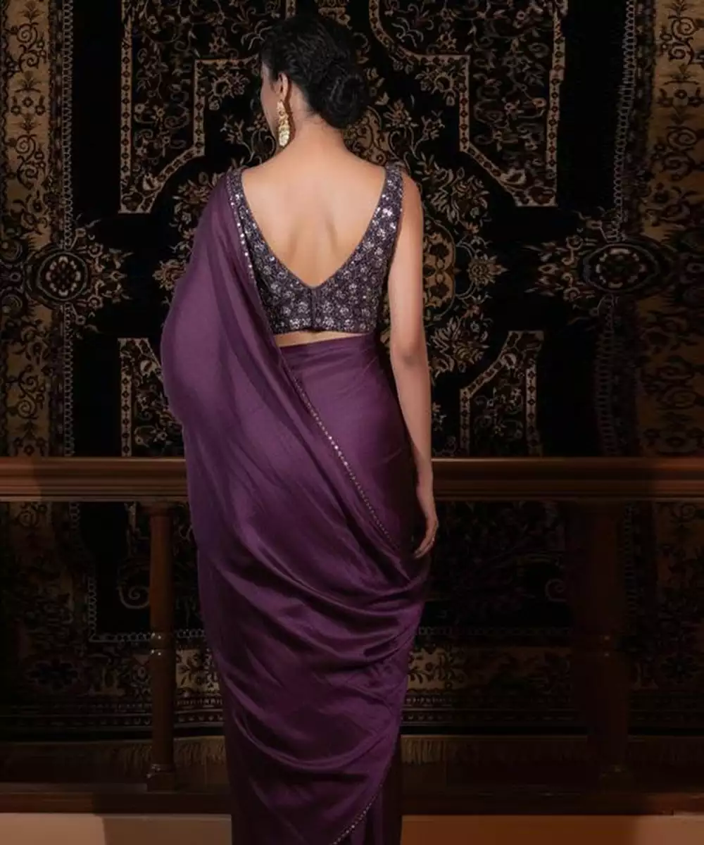 This Purple Embroidered Net Pre Draped Saree Set Highlights Delicate Craftsmanship And Modern Styling. The Intricate Embroidery Enhances The Sheer Net Fabric, Creating A Glamorous Festive Look. The Ready Draped Silhouette Ensures Comfort And Convenience. Perfect For Weddings, Receptions, And Grand Celebrations.