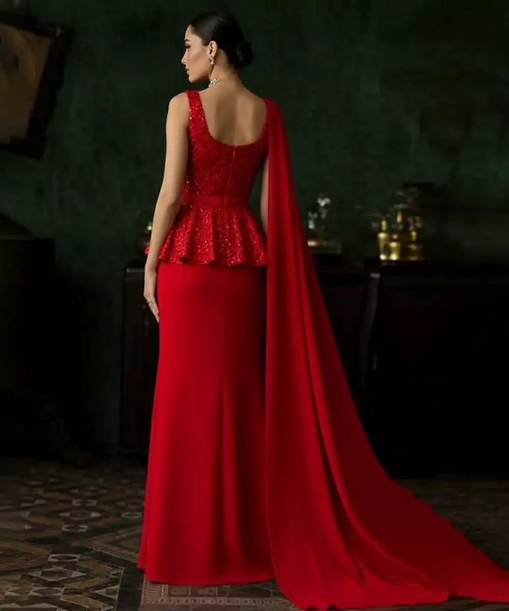 This Red Net Fusion Set Is Detailed With Fine Embroidery For A Glamorous Festive Look. The Sheer Fabric Adds Elegance And Lightness. Ideal For Party Wear, Wedding Functions, And Modern Ethnic Celebrations.